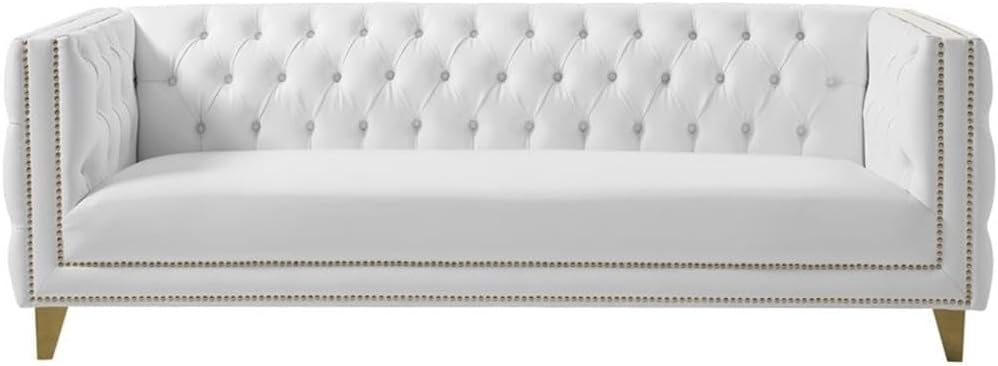 | Additional Features | Deep Button Tufting, Gold Nailheads, Soft White Vegan Leather |