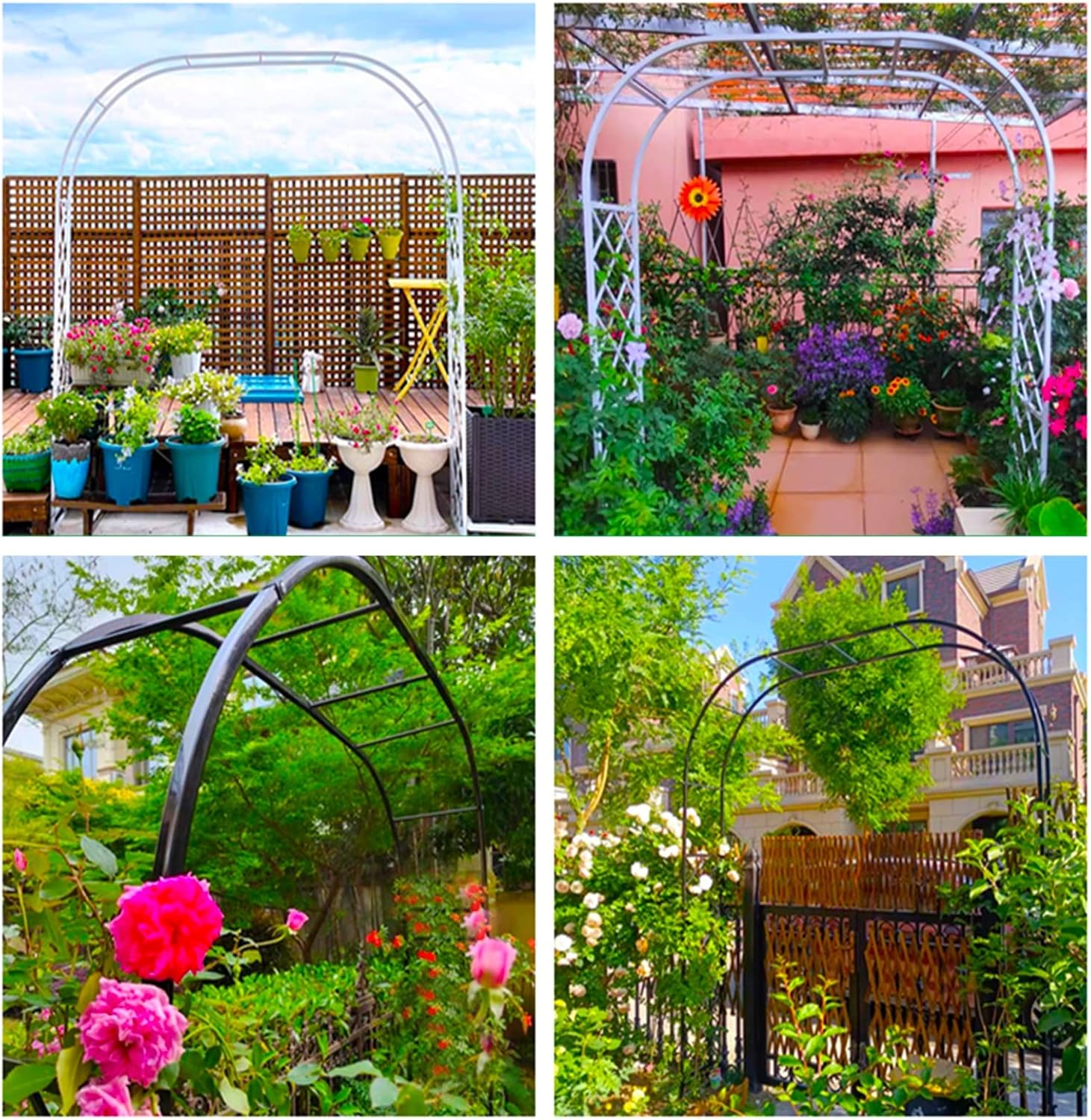 Make your flowers an eye-catcher with the trellis for roses - Also ideal for vines, ivy and similar climbing plants - Decorated rose arch gives shape and support.Tree support Made of high quality steel, waterproof and rustproof, more durable than other rose arches on the market.Ideal for climbing on flowers, also can be used for weddings, anniversaries, party decorations, driveways, entrances, etc.Product Name: Mesh Reinforced BowColor of product: black, white, bronze, greenProduct material: galvanized pipeProcess: high temperature baking paint Anti-corrosion and anti-rustApplicable: villa/garden/balcony/hotel/weddingProduct size: 140x230x40cm, 180x250x40cm, 200x250x40cm, 220x250x40cm, 250x250x40cm, 280x250x40cm, 310x250x40cm , 340 x 250 x 40 cm, 370 x 250 x 40 cm (width without base)* Due to shooting weather, light, display and other reasons, the product may have a slight color difference.Please understand that the actual situation shall prevail.