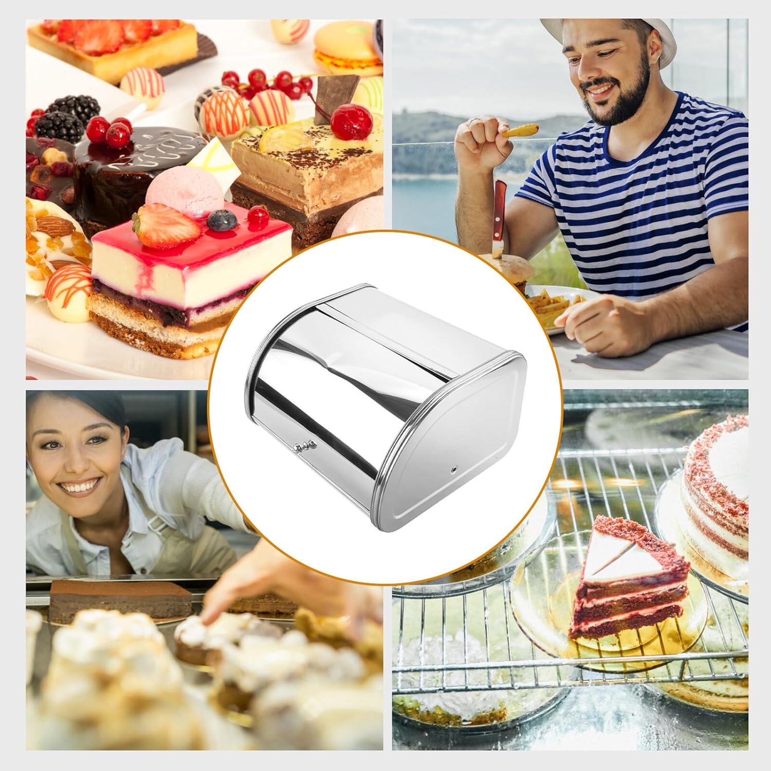 Package Include 1 x bread storage box Characteristics - Size: 30.00X27.00X17.80cm/11.79X10.61X7.00in -Material:Stainless steel - Color: Silver -Product Info:Mirror storage box - Large capacity for easy organization of kitchen essentials, ample space provided for arrangement and storage bread keeper. - Adds touch of vintage charm to your kitchen decor, enhances the aesthetic appeal of your kitchen, decorative. bread container for homemade bread -T he bread box has a large capacity for storing and organizing your bread, food, snacks, kitchen cutlery, etc Bread Storage. - Multipurpose storage can for bread, cookies, and other food items, ensuring freshness and taste, versatile storage bread storage for homemade. - material withstands daily use and is easy to clean, constructed from sturdy material that can regular use.Goods Informationcountertop bread saver Do you need bread box? Do you always worry about the cluttered tables in the kitchen? Are you tired of cleaning the kitchen? If so, don't wait any longer, come and take at our creative and multi-function Bread Box that can help you store your different kinds of bread