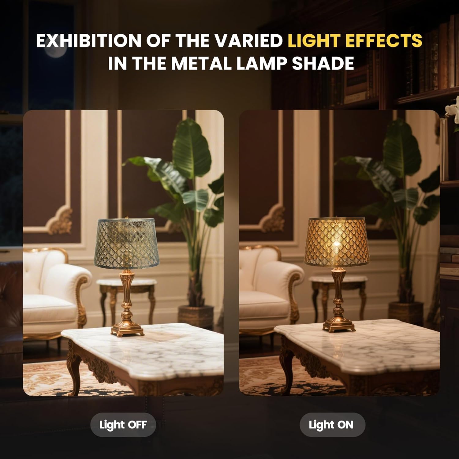 Introducing our exquisite Metal Etched Arrow Lamp Shade,a perfect blend of artistry and functionality designed to elevate the ambiance of any space.This lampshade is meticulously crafted from high-quality metal,ensuring durability and longevity.The metal etching process adds intricate details to the arrow design,giving it a sophisticated and artistic appearance. Antique Copper&Golden Interior Finish:The exterior of this lamp shade is coated with an antique copper finish,exuding a vintage charm that adds a touch of nostalgia to any room.The interior features a golden hue,creating a striking contrast that enhances the visual appeal of the lamp shade.This dual-color design not only looks stunning but also casts a warm and inviting glow when illuminated. Perfect Size for Versatile Use:Measuring 10 inches in Top,12 inches in Bottom, and 8 inches in height,this drum lamp shade is designed to fit a variety of lighting fixtures.Whether you’re looking for a lamp shade for a table lamp,floor lamp,or even a pendant light,this size ensures a perfect fit and a harmonious look.It’s ideal for both small and large spaces,making it a versatile addition to your home decor. Stylish Arrow Design:The arrow shape of this table lamp shade is both stylish and functional.It can serve as a decorative piece,a directional indicator,or simply an eye-catching focal point in any setting.The metal etching adds a unique texture and pattern,making it stand out from traditional lamp shades.This design is perfect for those who want to add a touch of modern elegance to their space without compromising on style. Suitable for Indoor&Outdoor Use:This metal lamp shade is designed to be durable enough for both indoor and outdoor use.It can withstand various weather conditions while maintaining its aesthetic appeal.Whether you place it in your living room,bedroom,patio,or garden,it will enhance the overall ambiance with its antique copper and golden finishes. Enhance Your Lighting Setup:This lamp shade is not just a cover for your light bulb;it’s a statement piece that transforms your lighting fixture into a work of art.The combination of antique copper and gold finishes,along with the intricate metal etching,makes it a versatile piece that complements a wide range of styles.Whether you prefer modern,vintage,or eclectic decor,this lamp shade will seamlessly integrate into your existing design. In summary,our Metal Etched Arrow Lamp Shade is more than just a functional accessory;it’s a decorative element that brings beauty and sophistication to any space.Upgrade your lighting setup today and let this lamp shade be the centerpiece of your room!