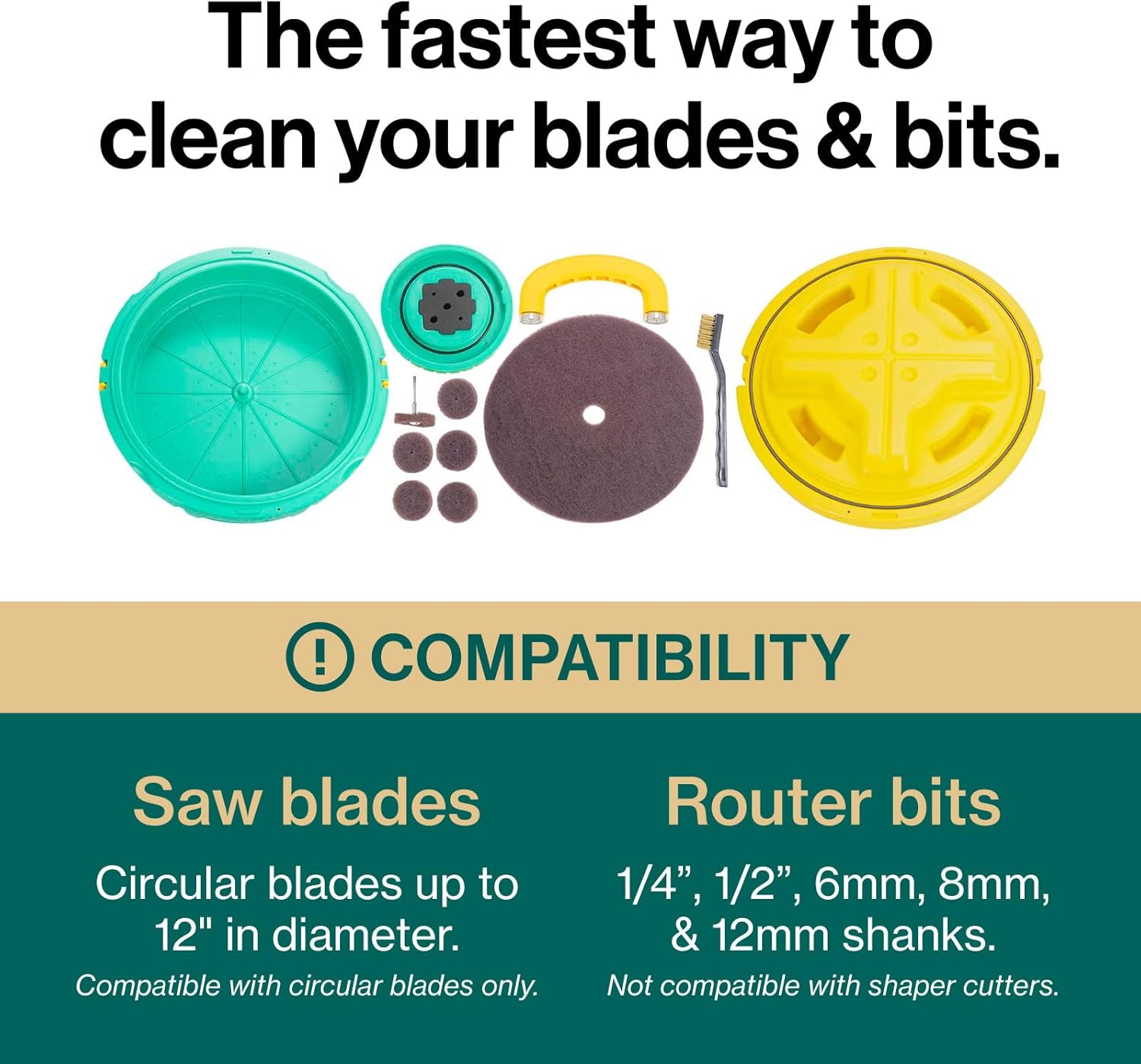 The BLADECLEAN saw blade and router bit cleaner system revolutionizes the way woodworkers maintain tools, delivering a faster and safer routine for workshop upkeep. Designed for saw blades from 7-1/2" to 12", this all-in-one solution uses a custom scouring pad that cleans an entire blade side in one motion, eliminating slow tooth-by-tooth scrubbing. The included magnetic handle controls blades securely, while a sealed cleaning well stores your solution for repeated use. The locking lid even has a built-in soaking well for router bits, making it one of the most practical CNC accessories for woodworking workshops. The small scouring discs and mandrels act as a tool cleaner for polishing router bits, chisels, and other metal tools with a power drill or rotary tool. Discs are easily replaceable in convenient packs. Instead of sending blades away for sharpening, use industrial strength cleaning with the MICROJIG blade cleaning and pitch removal system to maintain sharper edges and enhance cutting performance. Regular cleaning with BLADECLEAN extends the life of your woodworking tools and supports peak performance in CNC machining. Compatibility Saw blades: Circular blades up to 12" in diameter (compatible with circular saw blades only) Router bits: 1/4”, 1/2”, 6mm, 8mm, and 12mm shanks (not compatible with shaper cutters)