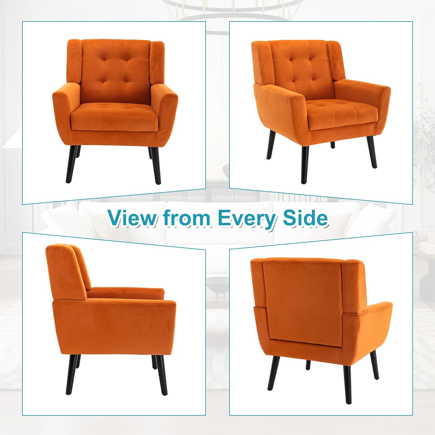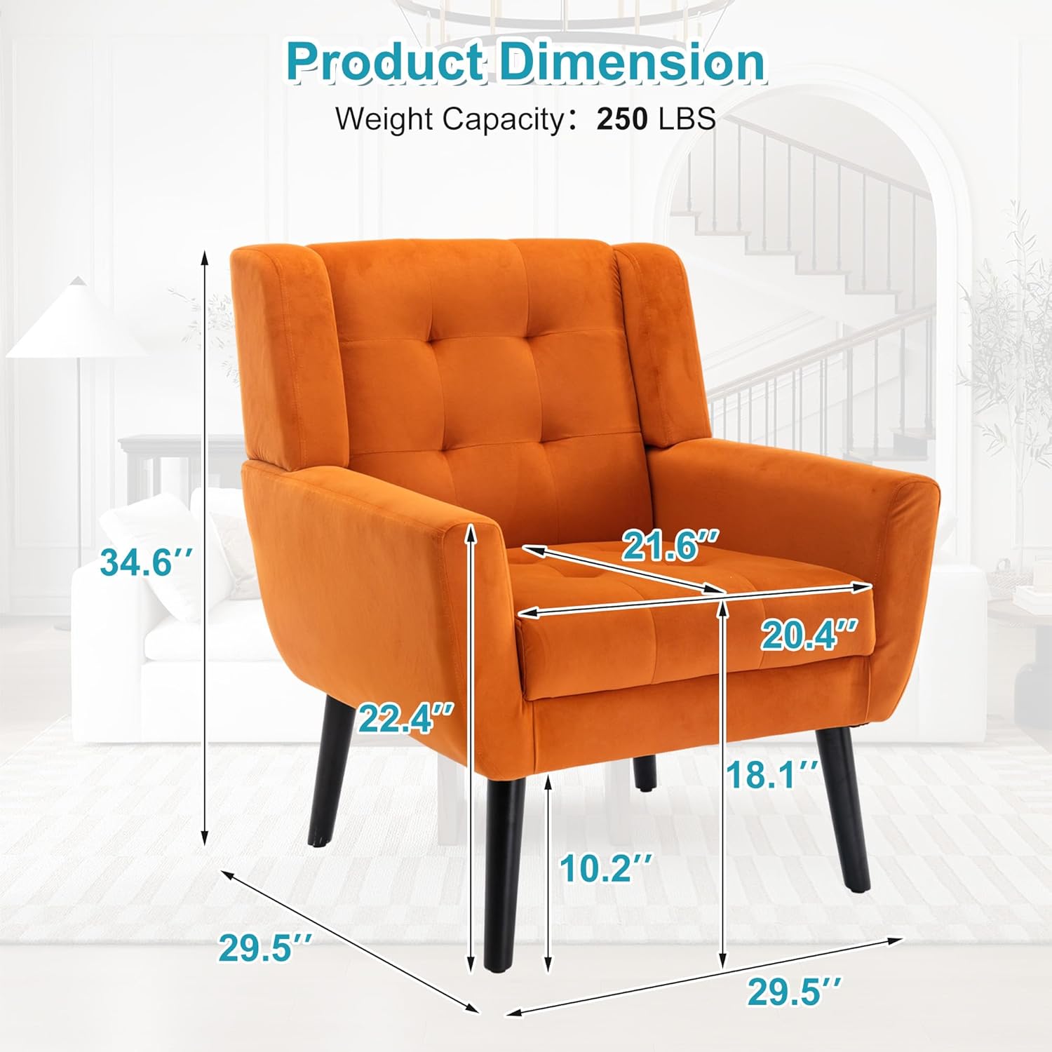 This velvet accent chair combines elegant design with ergonomic comfort. Featuring a plush padded seat, curved back, and smooth armrests, it gently cradles your body for a relaxing, lounge-like feel. The rich velvet upholstery adds a touch of luxury, making it a stylish addition to any living room, dining space, or home office. With a sturdy frame supporting up to 250 lbs and a reclined backrest designed for spinal support, it’s built for both beauty and everyday use. Easy to assemble and maintain, this chair blends form and function with effortless charm.