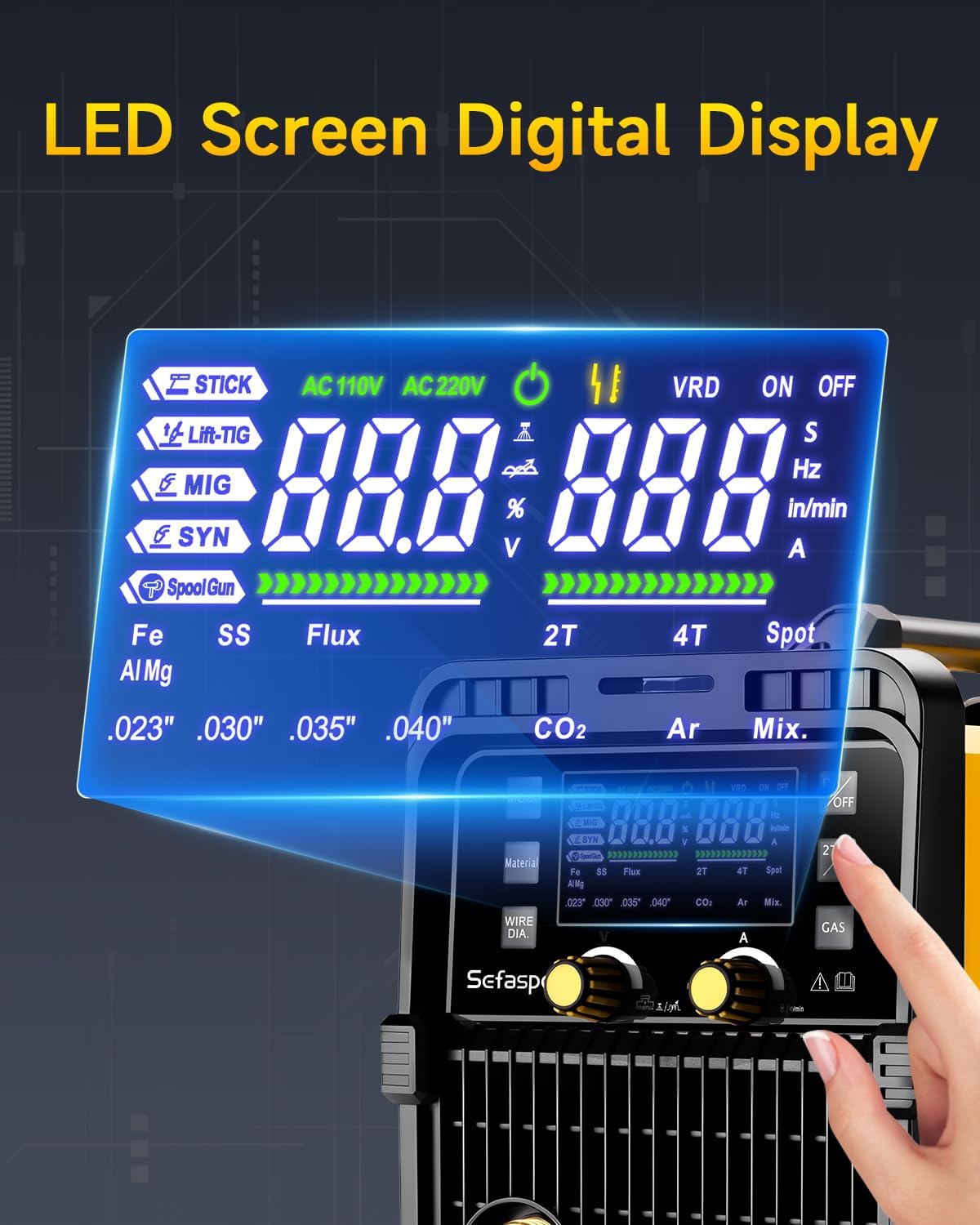 | Included Components | 10ft Mig Gun, โ10ft Electrode Holder, 10ft Ground Clamp, 110V / 220VAdapter, Gas Hose, User Manual, Wire Feed Drive Rollers; Contact Tips(1 pieces) |