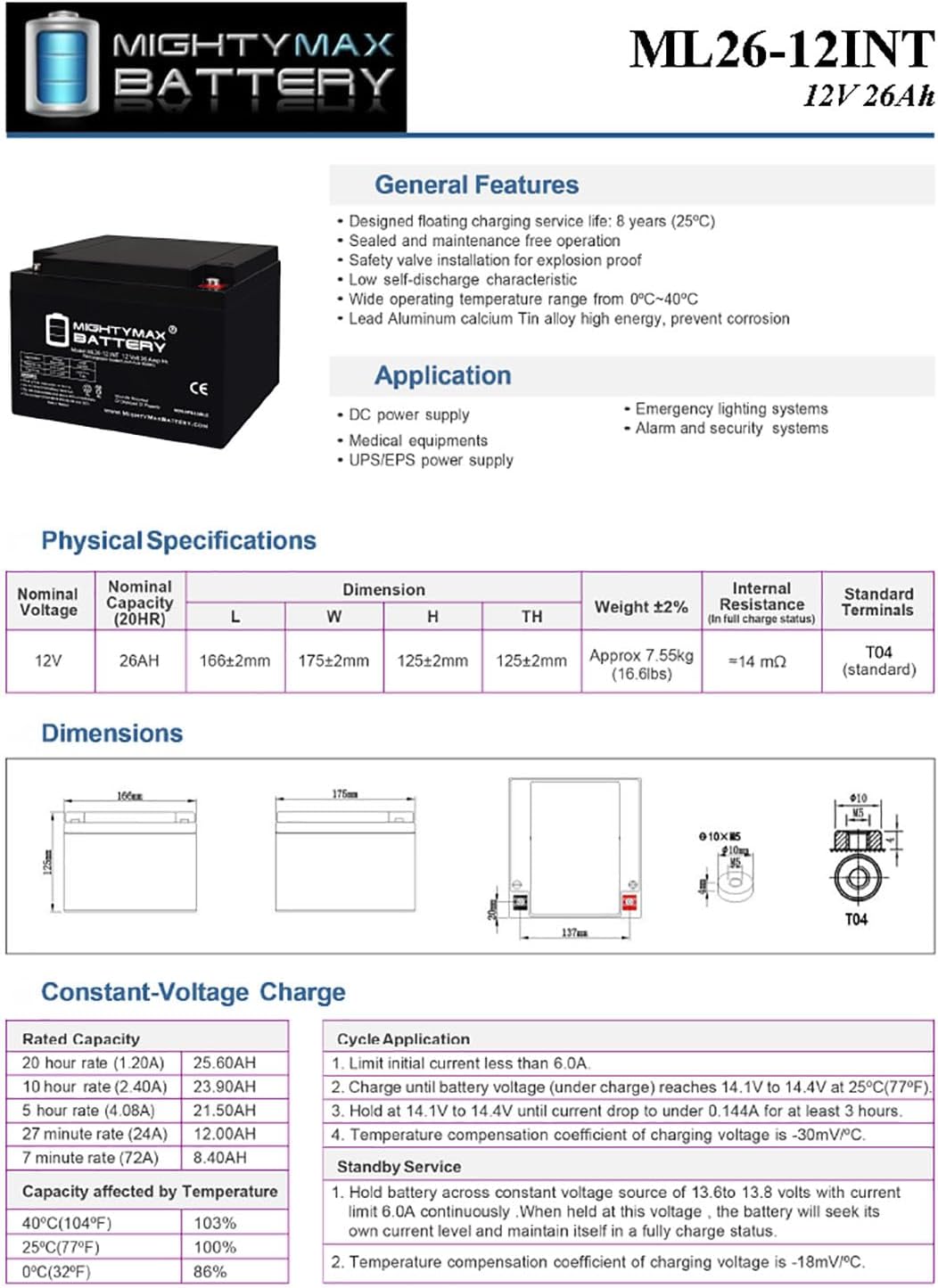 | Manufacturer | Mighty Max Battery |
