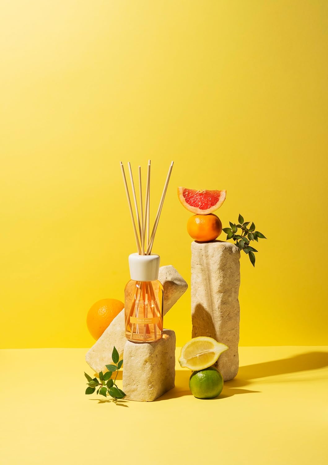 In this vibrant fragrance, fresh citrus and floral accords from the scents of lime and freesia blend with tangy and spicy heart notes. Elegant green accents bring to life a harmonious and fascinating atmosphere that releases all the freshness of citrus. This scented room fragrance is part of the Millefiori® Milano collection, where colour and light work together to create a very personal atmosphere in any room. Perfumes any room with a vibrant fragrance. Ideal for indoor use and for an elegant and pleasant diffusion. Colourful, modern fragrances inspired by trendy notes and add a touch of style and colour to any home decor. Available in various fragrances, refillable