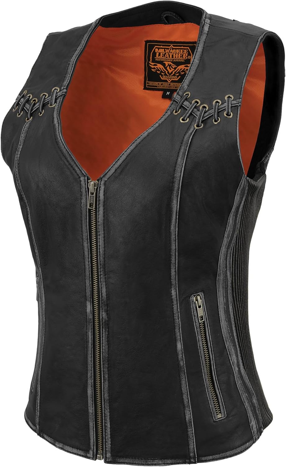 Milwaukee Leather Women's Distressed Grey or Brown Zip Front Leather Vest w/ Lacing Detail MLL4526 MLL4527