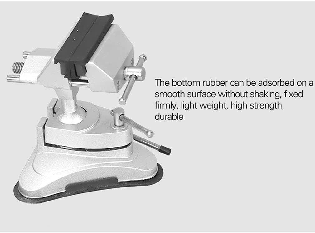 Type:Bench ViseDrive Mode:ManualEasy to Attach to anywhere there is furniture including tables, desks and workbenches .360 degree Rotating Head with 90 degree pivot to make sure your project is exactly where you need it.Rubber Jaws prevent marring and keep delicate parts safe.T-Bar Tightening allows for precise adjustments as well is creating high pressures.High-Grade Materials provide strength and reliability.Wide Jaws capable of Holding all of your projects.Item Weight: Approx. 1134.1g / 40.0ozColor: SilverMaterial: Aluminium Alloysize:Max Size of Vice Jaw: 6cm / 2.4inWidth of Vice Jaw: Approx. 9cm / 3.5inItem Size: Approx. 16 * 14.5 * 15.7cm / 6.3 * 5.7 * 6.2inPackage Contents:1*Rotary table viceOnly the above package content, other products are not included.Note: Light shooting and different displays may cause the color of the item in the picture a little different from the real thing. The measurement allowed error is +/- 1-3cm.