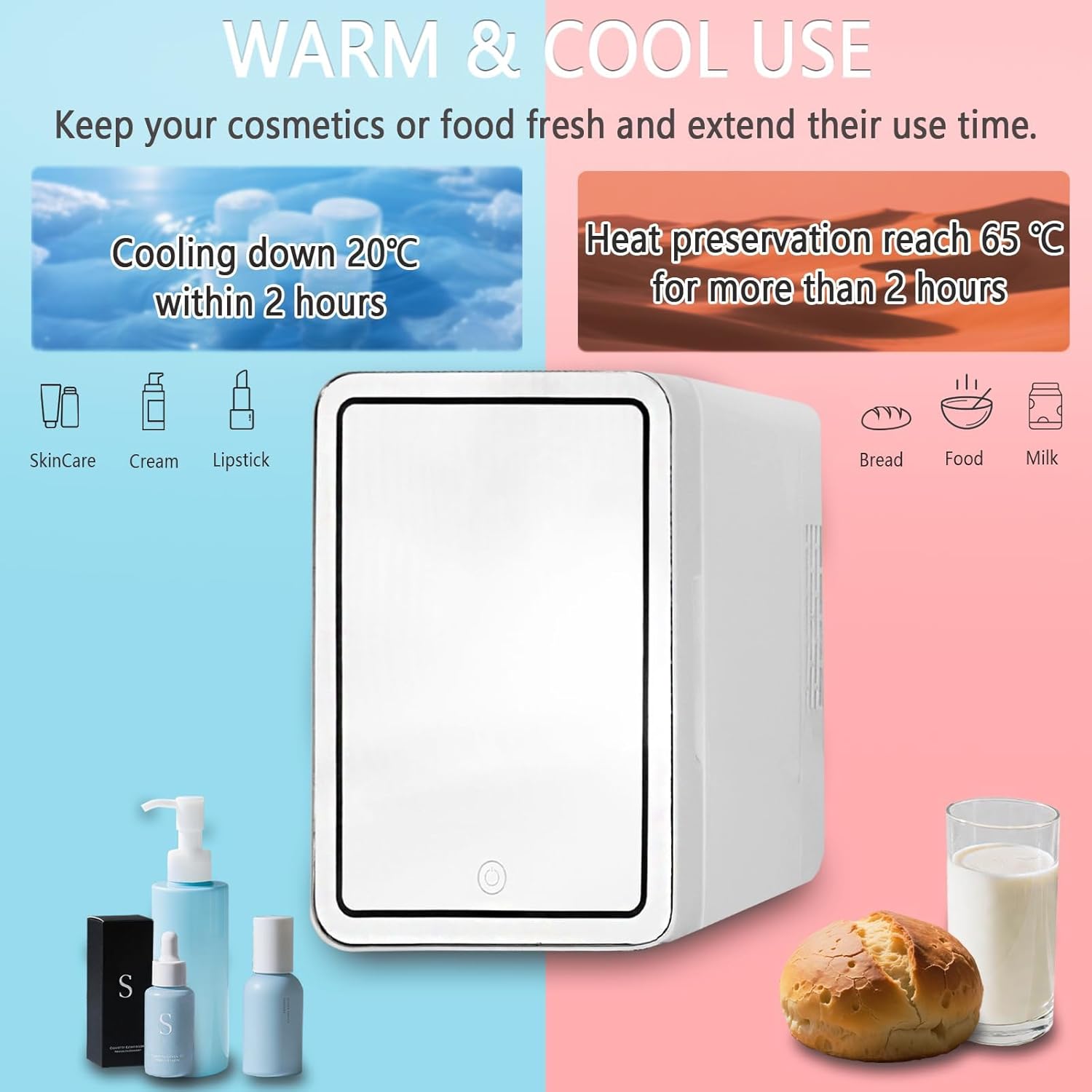 • โœ‹ Portable Small Refrigerator - With a capacity of 4L, this mini cosmetic fridge can easily store your cosmetics, favorite drinks, snacks, breast milk, etc. This hot & cold mini refrigerator can bring you cool drinks in the hot summer and warm food in the cold winter, it can effectively keep the contents in the freshest state, and it can fully meet your daily needs.
