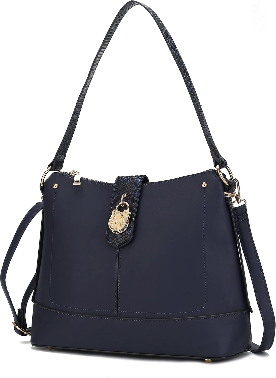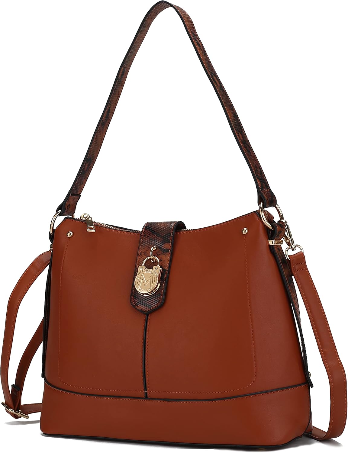 From a hectic day at work to lunch out with friendsOur Ezra Shoulder bag will top off any look with polished charm. Crafted from smooth high-quality vegan leather and matching faux- snake embossed trims, our Ezra Shoulder Bag is a modern take on the wardrobe icon.Fun, Casual DesignIncredibly versatile and available in a range of stunning colors, the designer Bag instantly upgrades your signature style at work, out shopping and anywhere in between. 2-in-1 ConvenienceStrap drop 25.2", the strap allows you to use the bag as either a hand or shoulder bag that's perfect for travel or everyday use.Your belongings will be safe with a magnetic snap fastening and a top zipper closure. Well MadeWear this style on your shoulder by the top handle or attach the shoulder strap and carry it crossbody for hands-free ease. This style has a flat base and feet for stability.