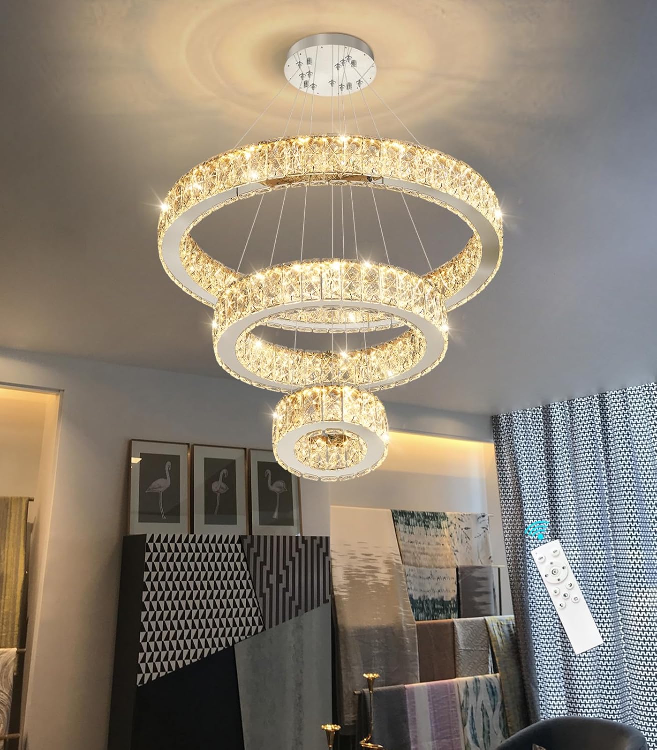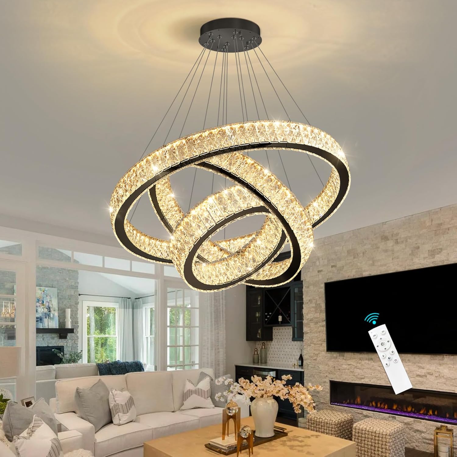 YLKP Modern Crystal Chandelier 36W Dimmable LED Ceiling Light Fixture with Remote Luxury Adjustable Pendant Light for Living Room Dining Room Black