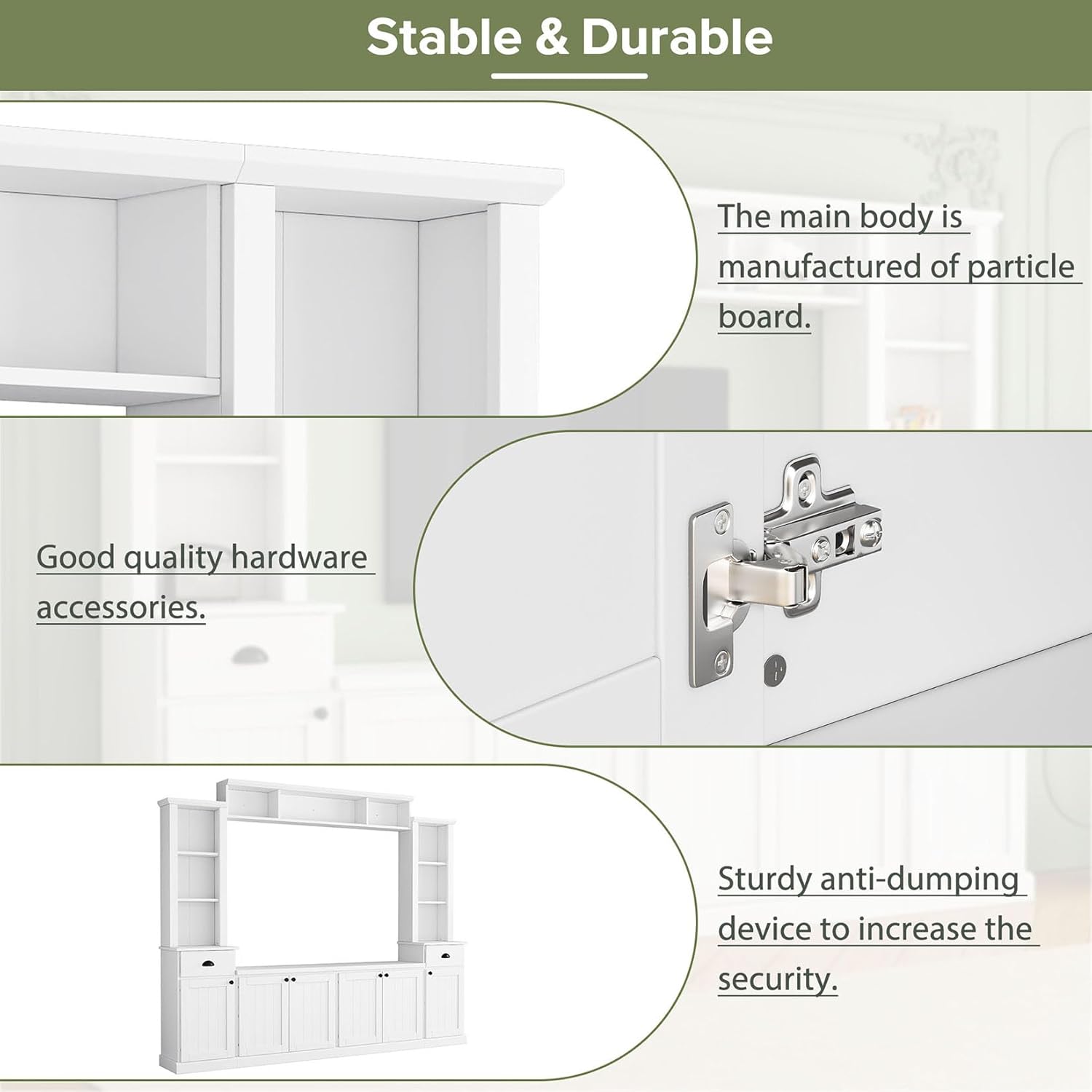 Modern Entertainment Wall Unit Set Minimalist TV Stand for TVs up to 75 inch Smart TV, TV Cabinets with Ample Storage, Television Stand Media Storage Cabinets for Living Room, White