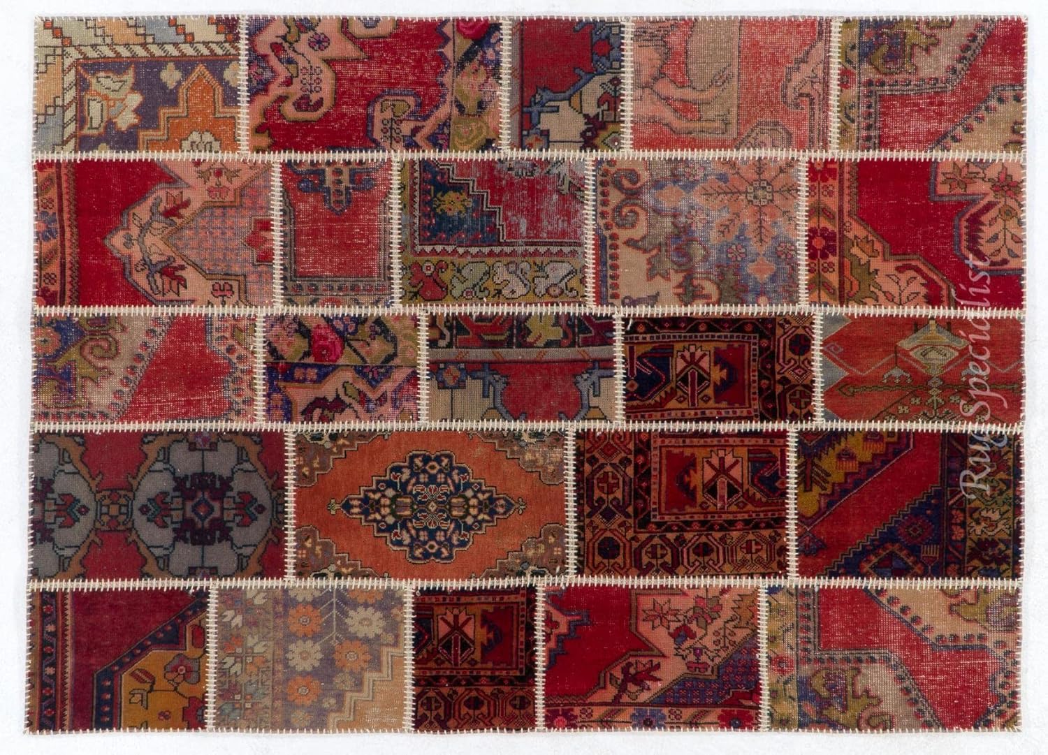 A vintage Turkish patchwork rug for contemporary interiors. Finely hand knotted, low wool pile on cotton foundation. The rug is in very good condition, professionally-washed, sturdy and suitable for areas with high foot traffic.