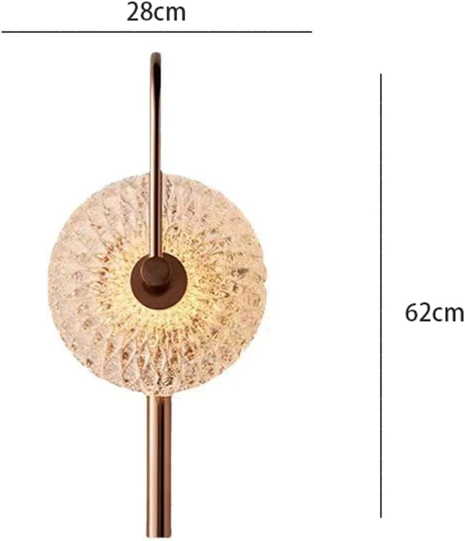 Product Parameters:Type: Wall Sconce / Wall LampStyle: Modern, Minimalist, Contemporary, Nordic, Decorative, Orb, Vertical, Ambient LightingMaterial: Hardware (frame, polished copper finish), Glass (textured sphere/shade)Color: Copper (metal parts), Clear Textured (glass sphere)Dimensions:Small Size:Height (Overall): 16.5" (42cm)Width (Overall): 7.9" (20cm)Large Size:Height (Overall): 24.4" (62cm)Width (Overall): 11.0" (28cm)Light Source: LEDColor Temperature: Warm WhiteBulb Included: YesOptimized Special Feature: This modern minimalist wall luminaire features a striking design with a textured glass sphere, reminiscent of a celestial body, into a sleek copper-finished hardware frame. Available in two sizes, each equipped with a warm LED, it casts a beautiful, diffused glow through the patterned glass. The vertical orientation and artistic form make it an ideal decorative accent. Perfect for bedrooms, living rooms, or hallways, it adds a touch of contemporary elegance, unique texture, and inviting ambient illumination.Applicable Space: Ideal for Bedroom, Bedside, Living Room, Hallway, Entryway, Corridor, Dining Room, Hotel Rooms, or any space desiring modern minimalist design, elegant textured glass illumination, and decorative appeal.
