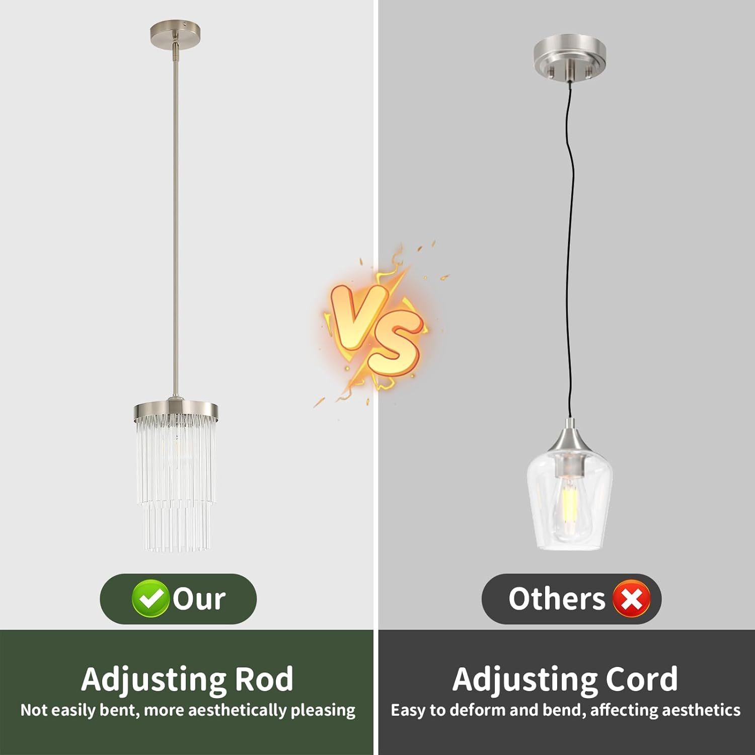 Modern Pendant Light Fixtures for Kitchen Island, Luxury Glass Chandelier Lights Fixture. Adjustable Small Hanging Pendant Chandelier Light Fixture for Dining Room, Bedroom, Foyer and Hallway 1-Pack