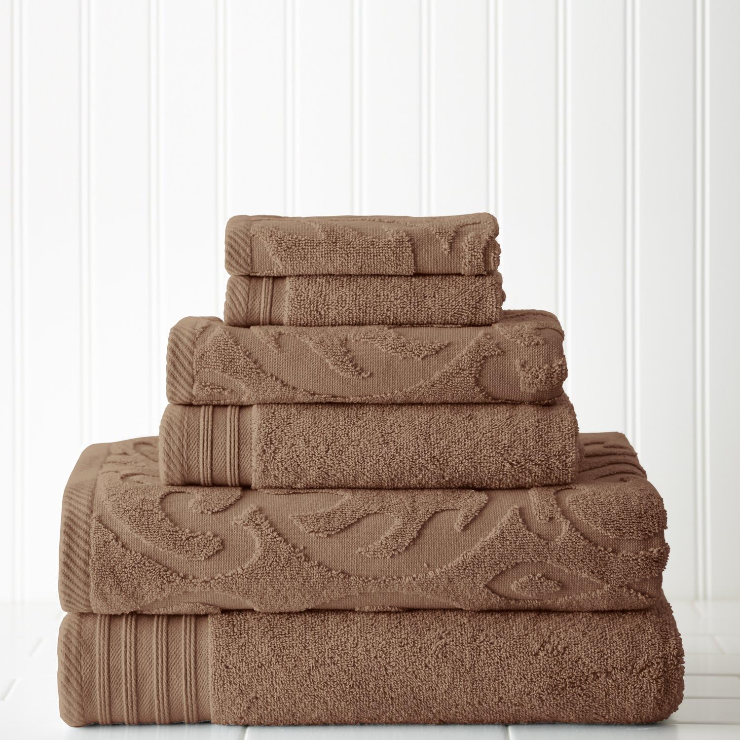 The Amrapur Overseas 6-Piece Medallion Jacquard/Solid Ultra Soft 500GSM 100% Combed Cotton Towel Set offers uniform loops giving the towels a luxurious, plush look and feel; while the design conveys fashion and sophistication. Plush and absorbent, the zero twist weave allows water to be absorbed very quickly, while ensuring durability. Includes (2) 27"x54" Bath towels, (2) 16"x28" Hand towels, (2) 13"x13" Washcloths. All material is machine washable and dryer safe.