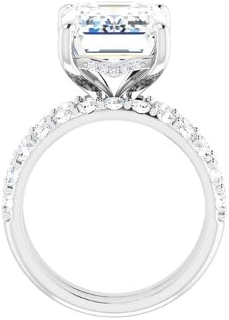 • Main Stone: Moissanite, Main Stone shape: Emerald Cut, Main Stone Color: Colorless, Main Stone Clarity: VVS1, Main Stone Luster: Excellent, Main Stone Weight: 6 CT Approx, Side Stone: Round Brilliant Cut, Side Stone Color/Clarity: White/VVS1, Side Stone Weight: 0.30 CT Approx, *** Description of Band:- Stone Shape: Round Brilliant Cut, Luster: Excellent, Stone Color/Clarity: White/VVS1, Stone Weight: 0.28 CT Approx, Type: Handmade Ring Set, Setting Type: Prong Setting