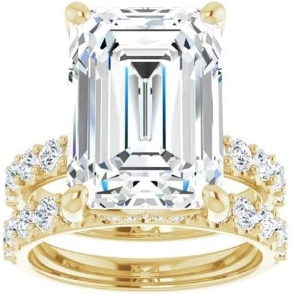Moissanite Ring Set 6 Ct Emerald Moissanite Engagement Ring & Wedding Bridal Ring Set In 10k 14k 18k Gold & 925 Sterling Silver Christmas Ring for Women