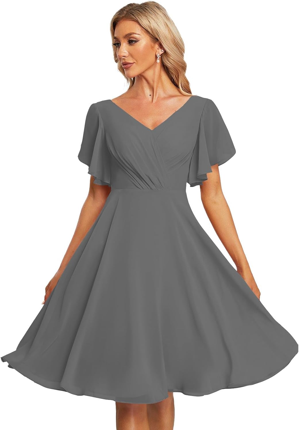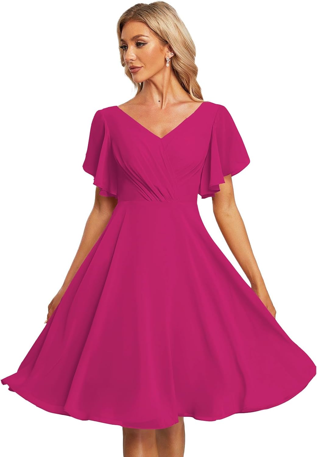 Welcome to Monvelli, we are a professional dress manufacturer, all of which we are using high-quality fabrics.Product Features:1.Fabric: Flowy Chiffon2.Silhouette: A-Line3.Length: Knee Length4.Neckline: V Neck5.Sleeves: Flutter Sleeve6.Embellishment: Pleated, Empire Waist, with Pockets7.Back Style: Lace upIf you are not sure of your size, please take the measurement according to the measurement table. The measurement details are as follows:1.Full Bust _ inch2.Waist _ inch3.Hips _ inch4.Hollow to Floor _ inchWe also provide other customized service. If any requirements, please contact customer service first.Warm Tips:1. The real color of the item may be slightly different from the pictures shown on website due to camera quality and monitor settings. Photos are taken in natural light with no flash.2. For the urgent order,please contact us before placing order to ensure you can get it on time.3. For more information on returns or customization, please feel free to contact us, we provide 24 hours online service.
