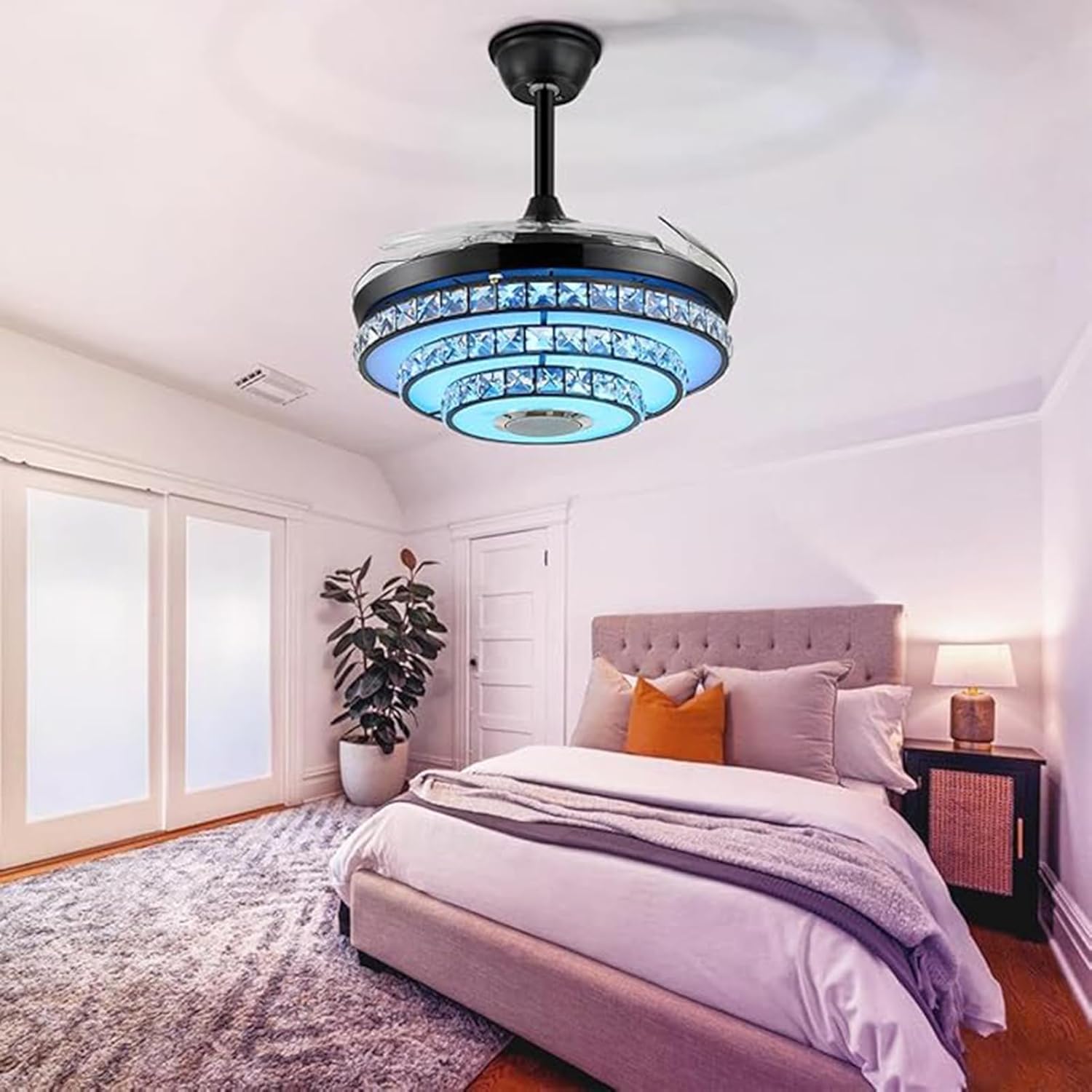 • Chandelier with Fans: Crystal chandelier, retractable and reversible ceiling fan, bluetooth speaker, music player 4 in 1, Multi-functional crystal ceiling fan, absolutely the best fan chandelier light fixture for indoor spaces