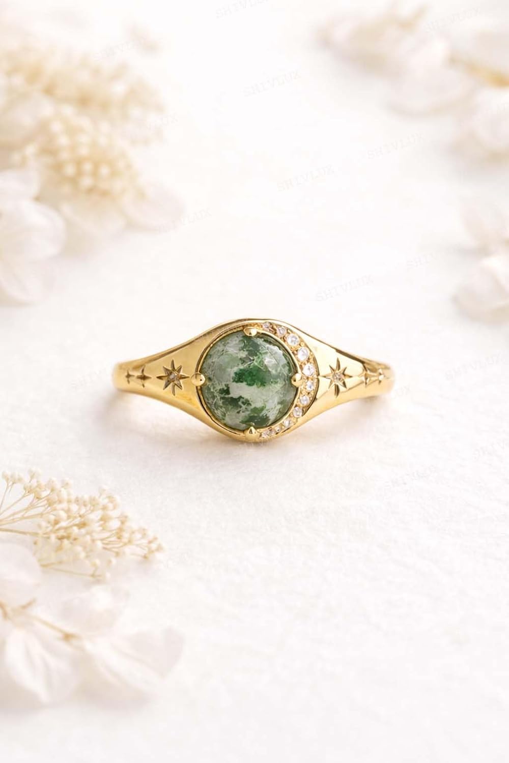 | Gem Type | Cubic Zirconia, Moss Agate |