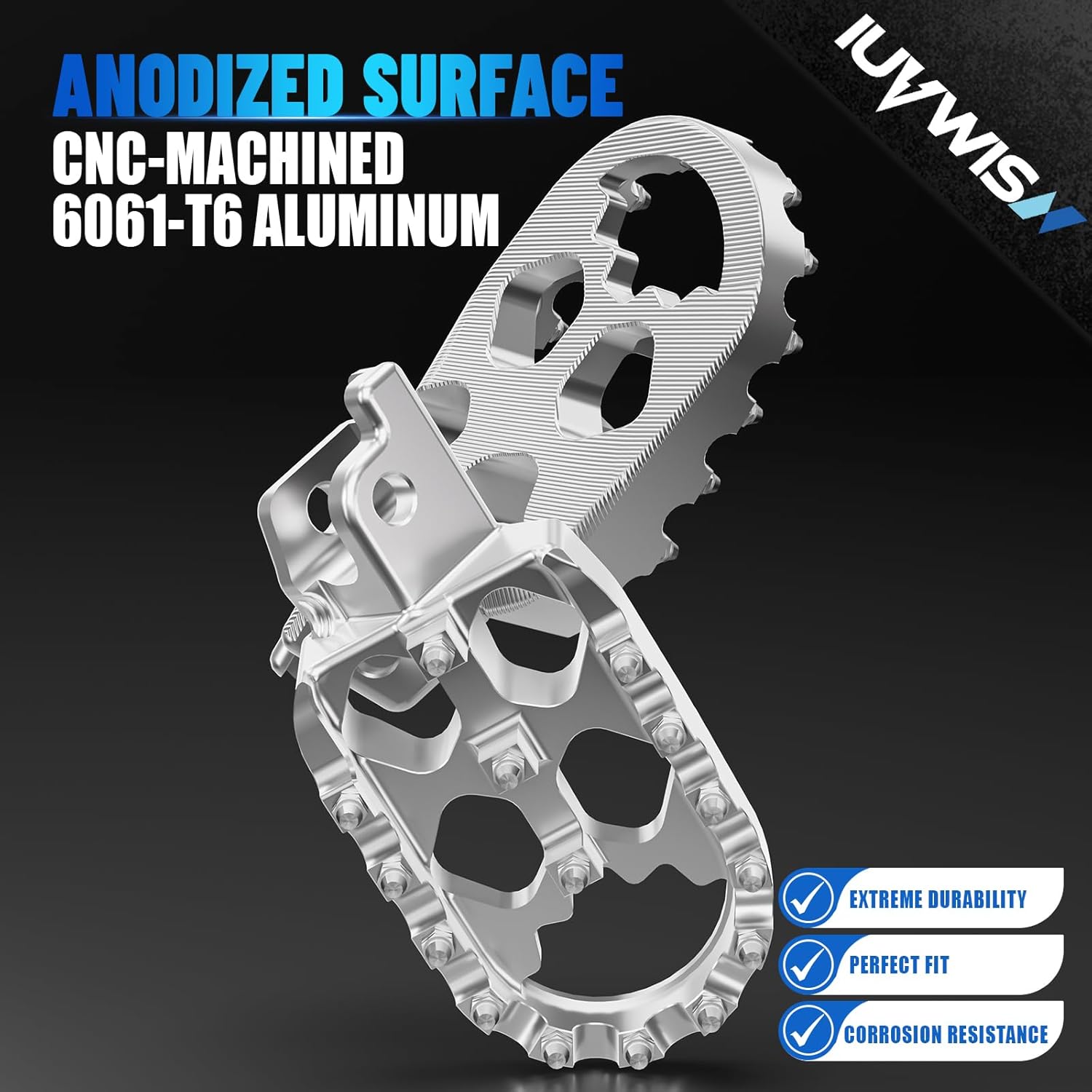 Features: Sharp teeth made from hardened steel resist wear. Removeable and replaceable teeth. Exclusive "y" bridge Improved comfort and control with nearly 30% more surface area. Mount with all your stock hardware. Pictures showing is of exact item you will receive. Easy To Install. Specification: Color: As Pictures Material: Aluminium Alloy Fitment: For 72V Mantis For 72V Rawrr Mantis X For 72V Mantis Mini R For 48V Mini Pup For 48V Rawrr Mantis Mini Package Includes: 1 Pair of Electric Dirt Bike Foot Pegs As Pictures Related Accessories As Pictures Instruction of Installation is NOT Included.