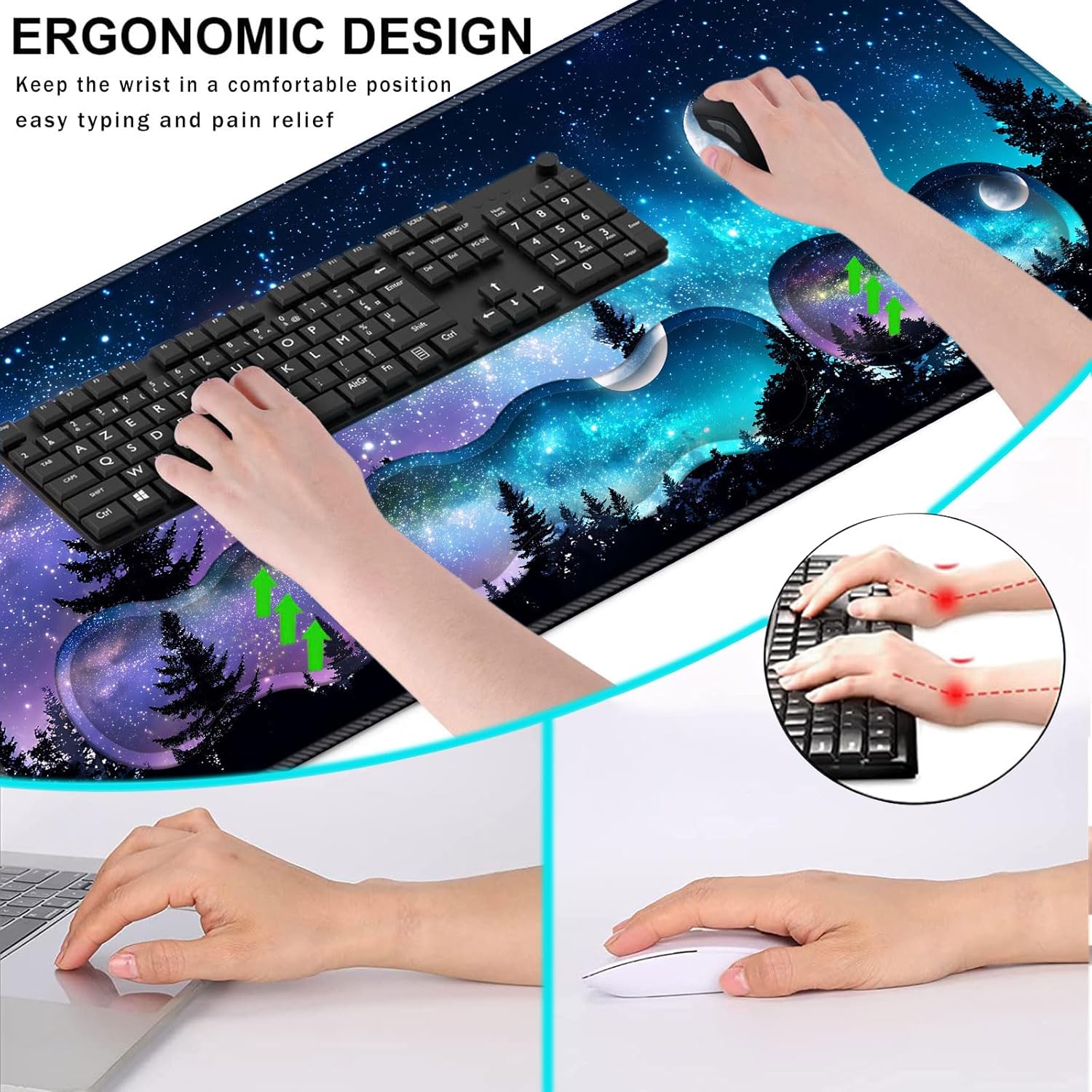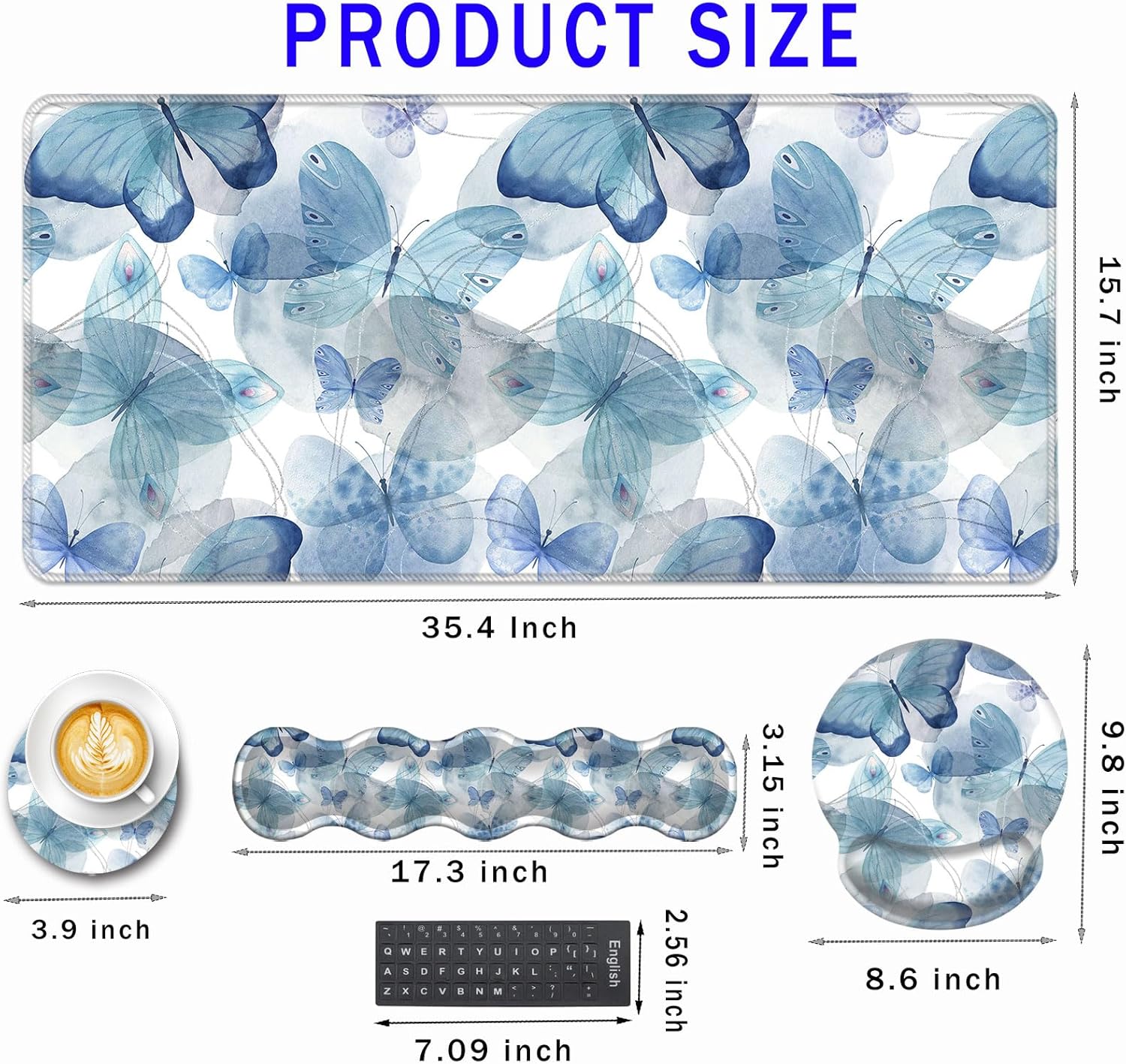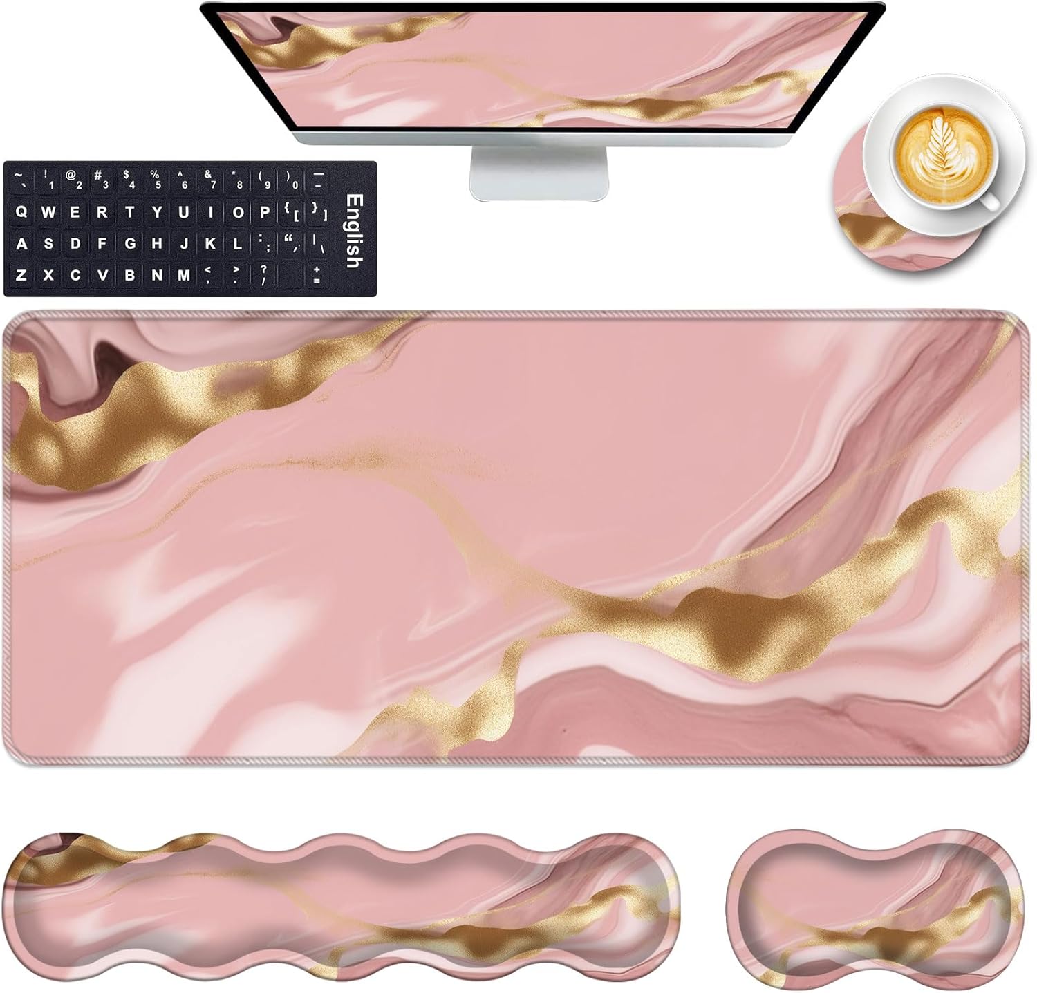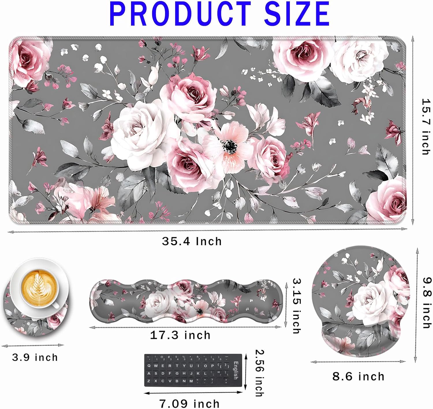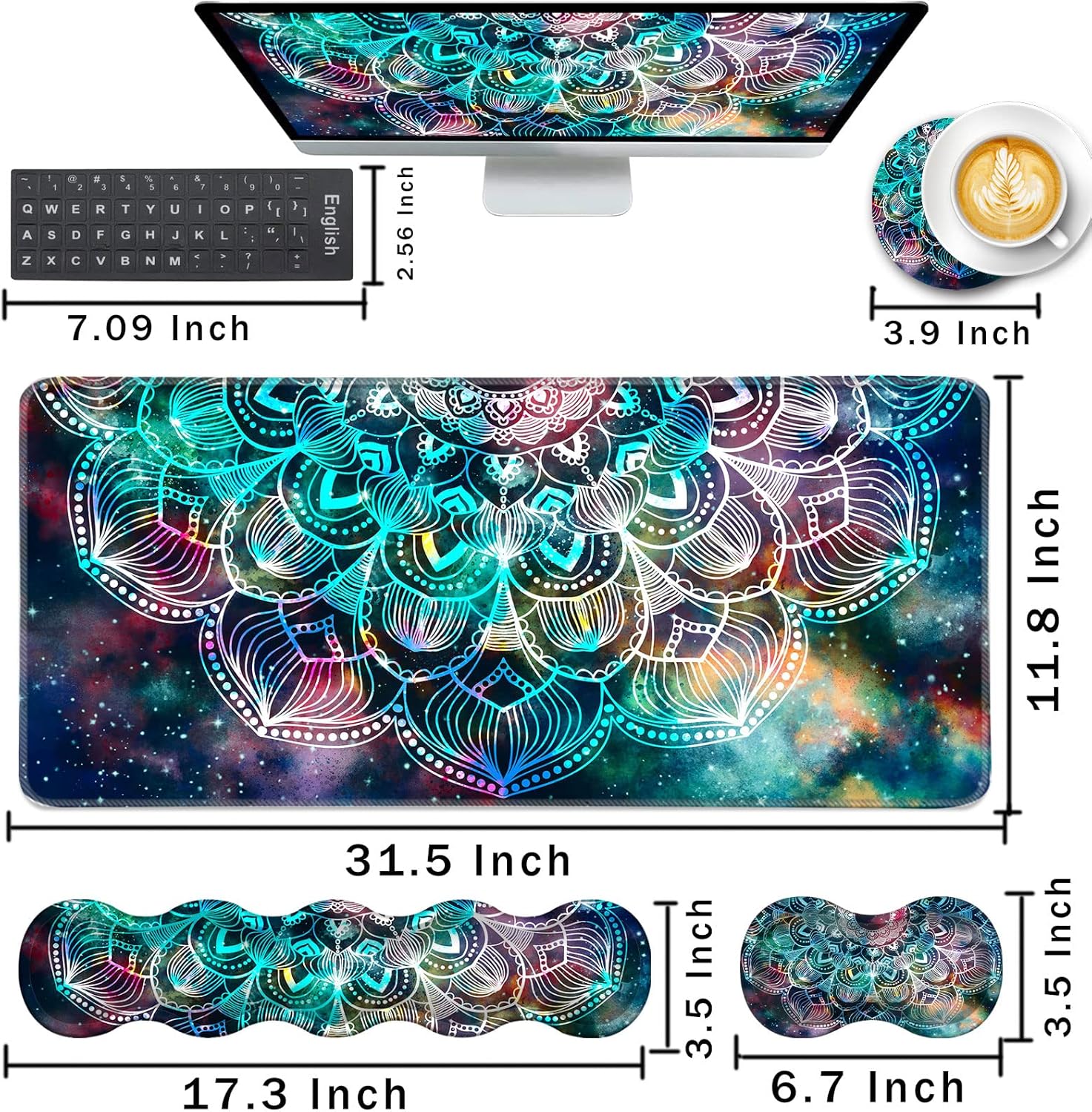 CICPLKSE : Art Print, So Beautiful The aim of the mouse pad set is: Relief from the stress disorder. It helps with problems associated with excessive use of the mouse or any other contraption that requires massive movement of the wrist, like carpel tunnel syndrome. Keeps wrists in neutral position. The product helps to perfectly align your wrists; it also supports them when you are not doing anything. Do you suffer from wrist sore or wrists would get red when using computer after a long time? Chose CICPLKSE mouse pad with wrist rest will give your everything in comfort you needed. The bottom work well keeping itself on the surface being used so it won't slide around while in use. Memory foam padding let’s your hands and wrists sink in soothingly and you can work or play computer game happily for hours or longer. Fatigue-free Typing Design reduced the strain on wrist, helps to avoid joint and wrist issues. Specifications: Wrist Filling Material: Memory form Package Included: 1x Large Desk Mat(35.4" x 15.7") 1x Keyboard Wrist Rest(17.32" x 3.55" x 0.98") 1x Mouse Pad with Wrist Rest(8.66" x 9.84" x 0.86") 1x Coaster(3.93" x 3.93")1x Keyboard Stickers(7.09x2.56inch)Order CICPLKSE Mouse Wrist Pads today and say goodbye to uncomfortable and painful typing. Any questions, please contact CICPLKSE, we will try our best to satisfy you.