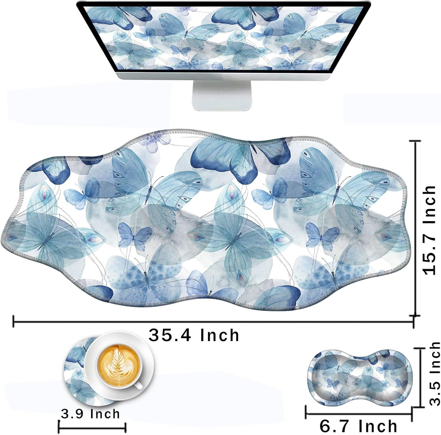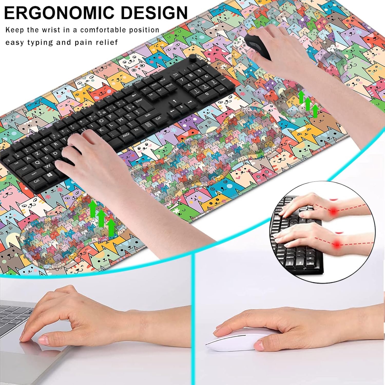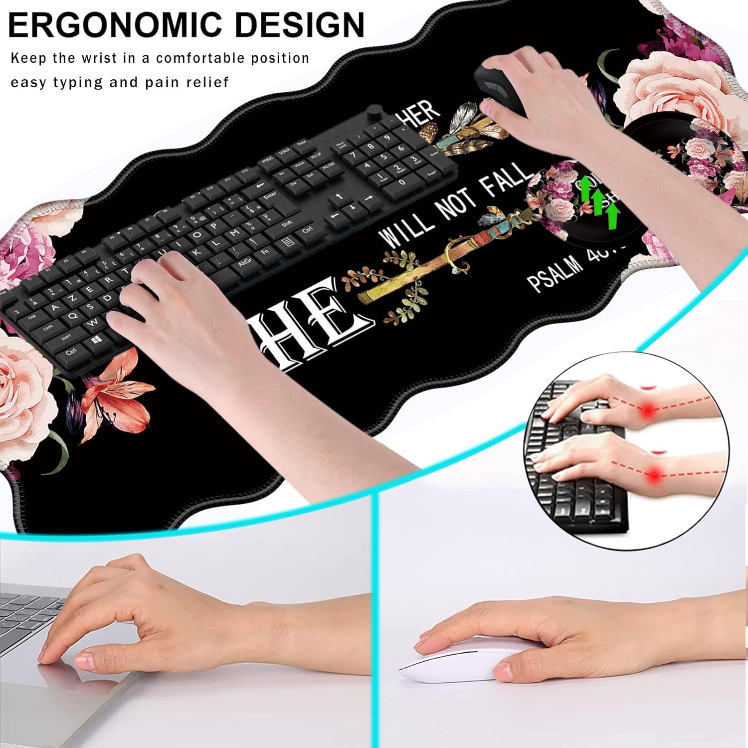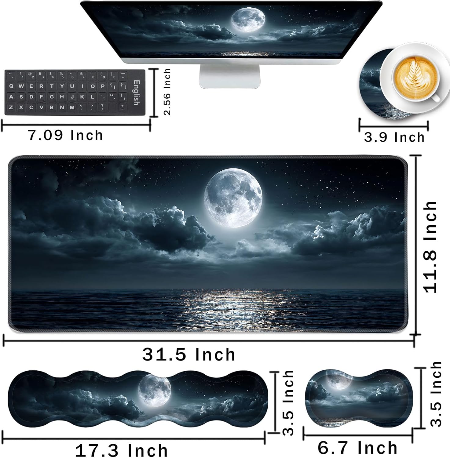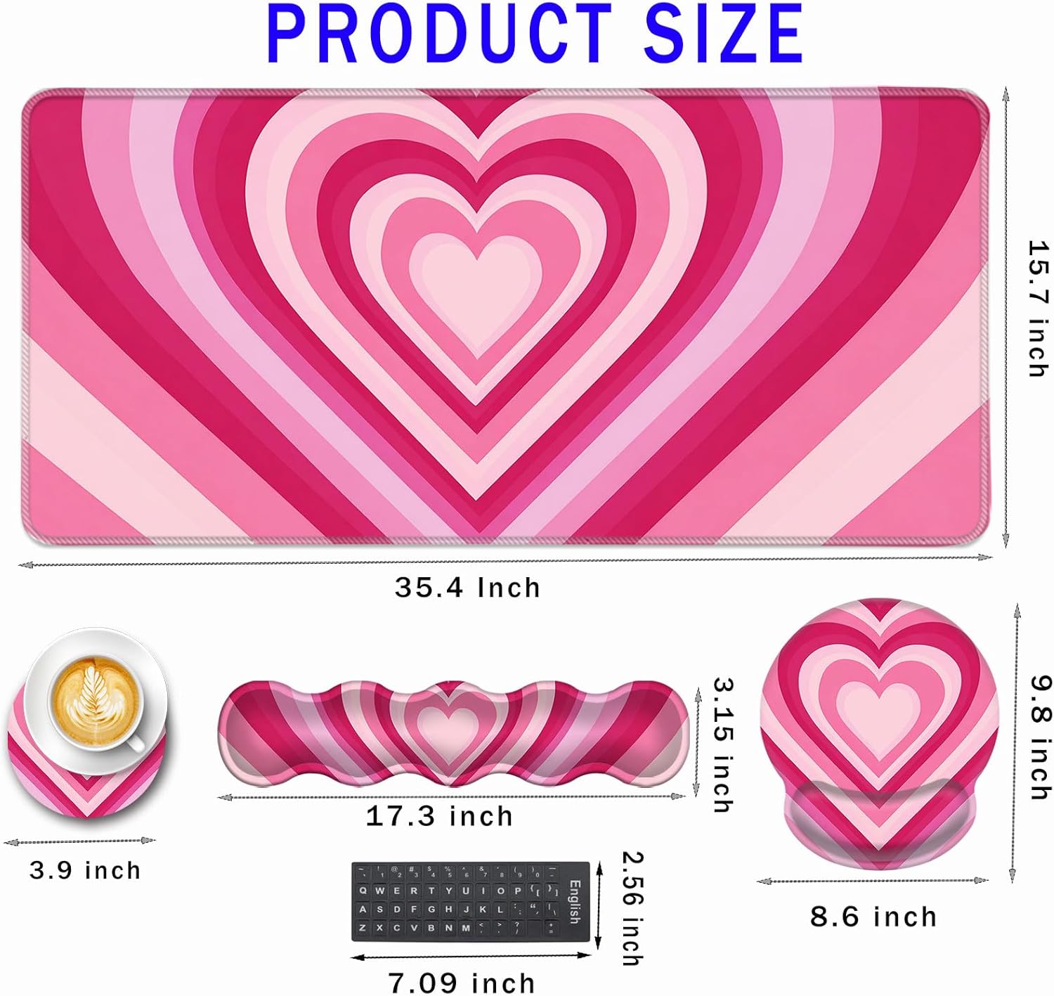 CICPLKSE : Art Print, So Beautiful The aim of the mouse pad set is: Relief from the stress disorder. It helps with problems associated with excessive use of the mouse or any other contraption that requires massive movement of the wrist, like carpel tunnel syndrome. Keeps wrists in neutral position. The product helps to perfectly align your wrists; it also supports them when you are not doing anything. Do you suffer from wrist sore or wrists would get red when using computer after a long time? Chose CICPLKSE mouse pad with wrist rest will give your everything in comfort you needed. The bottom work well keeping itself on the surface being used so it won't slide around while in use. Memory foam padding let’s your hands and wrists sink in soothingly and you can work or play computer game happily for hours or longer. Fatigue-free Typing Design reduced the strain on wrist, helps to avoid joint and wrist issues. Specifications: Wrist Filling Material: Memory form Package Included: 1x Large Desk Mat(35.4" x 15.7") 1x Keyboard Wrist Rest(17.32" x 3.55" x 0.98") 1x Mouse Pad with Wrist Rest(8.66" x 9.84" x 0.86") 1x Coaster(3.93" x 3.93")1x Keyboard Stickers(7.09x2.56inch)Order CICPLKSE Mouse Wrist Pads today and say goodbye to uncomfortable and painful typing. Any questions, please contact CICPLKSE, we will try our best to satisfy you.