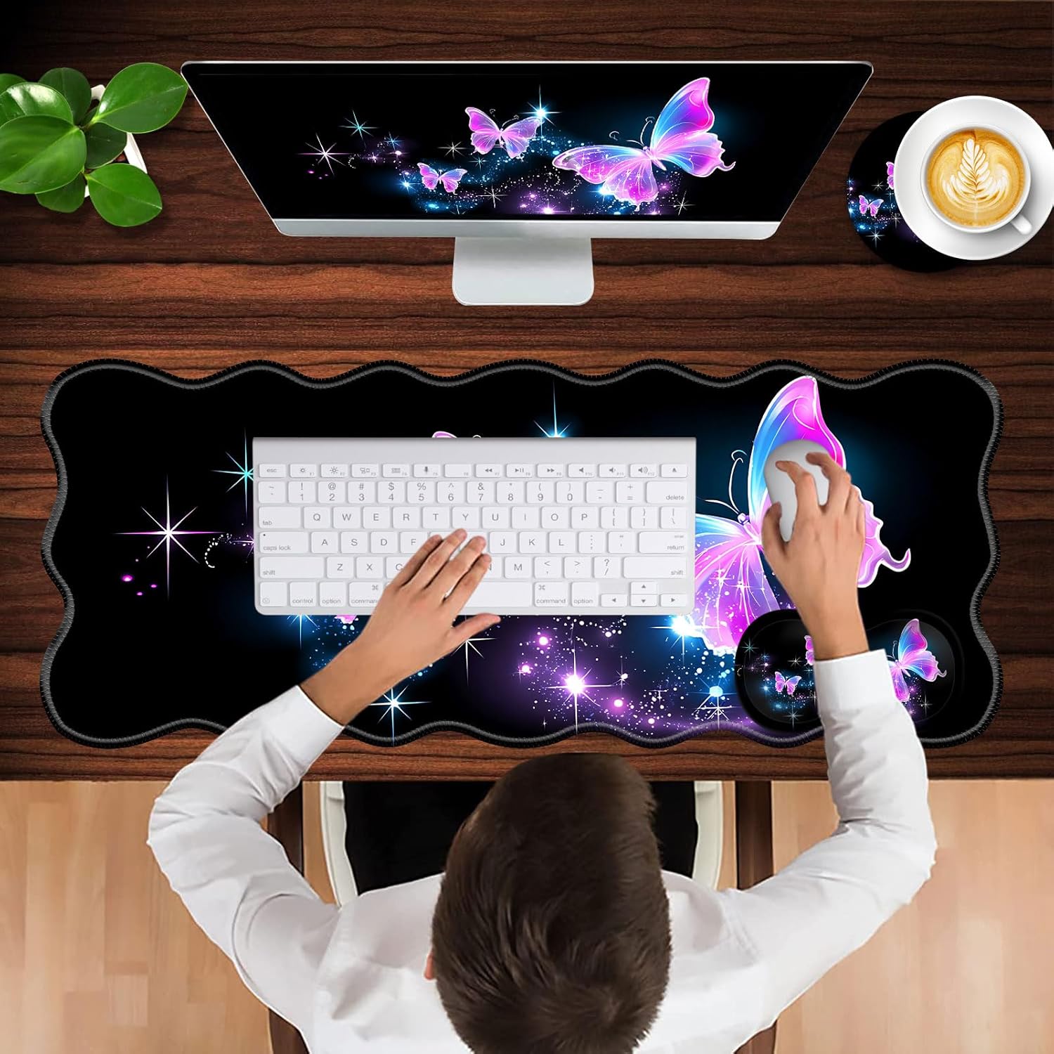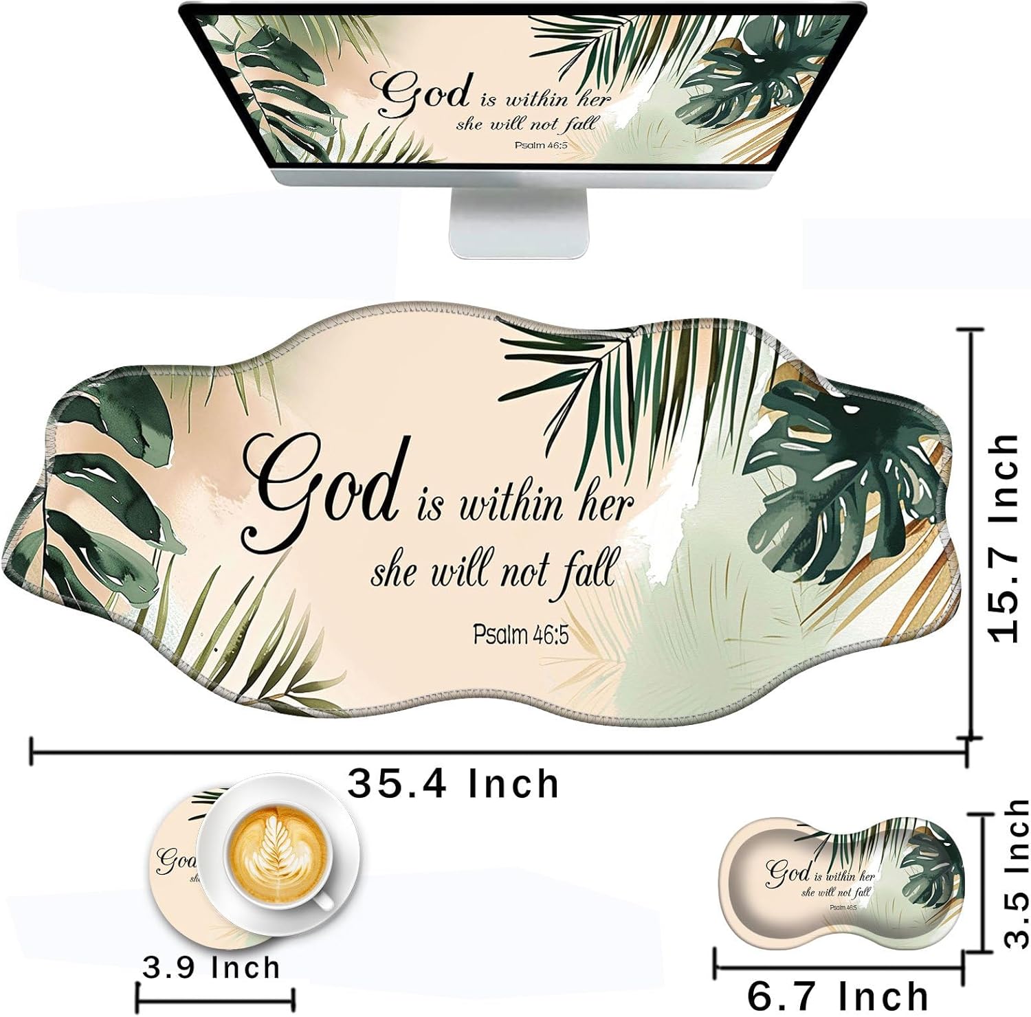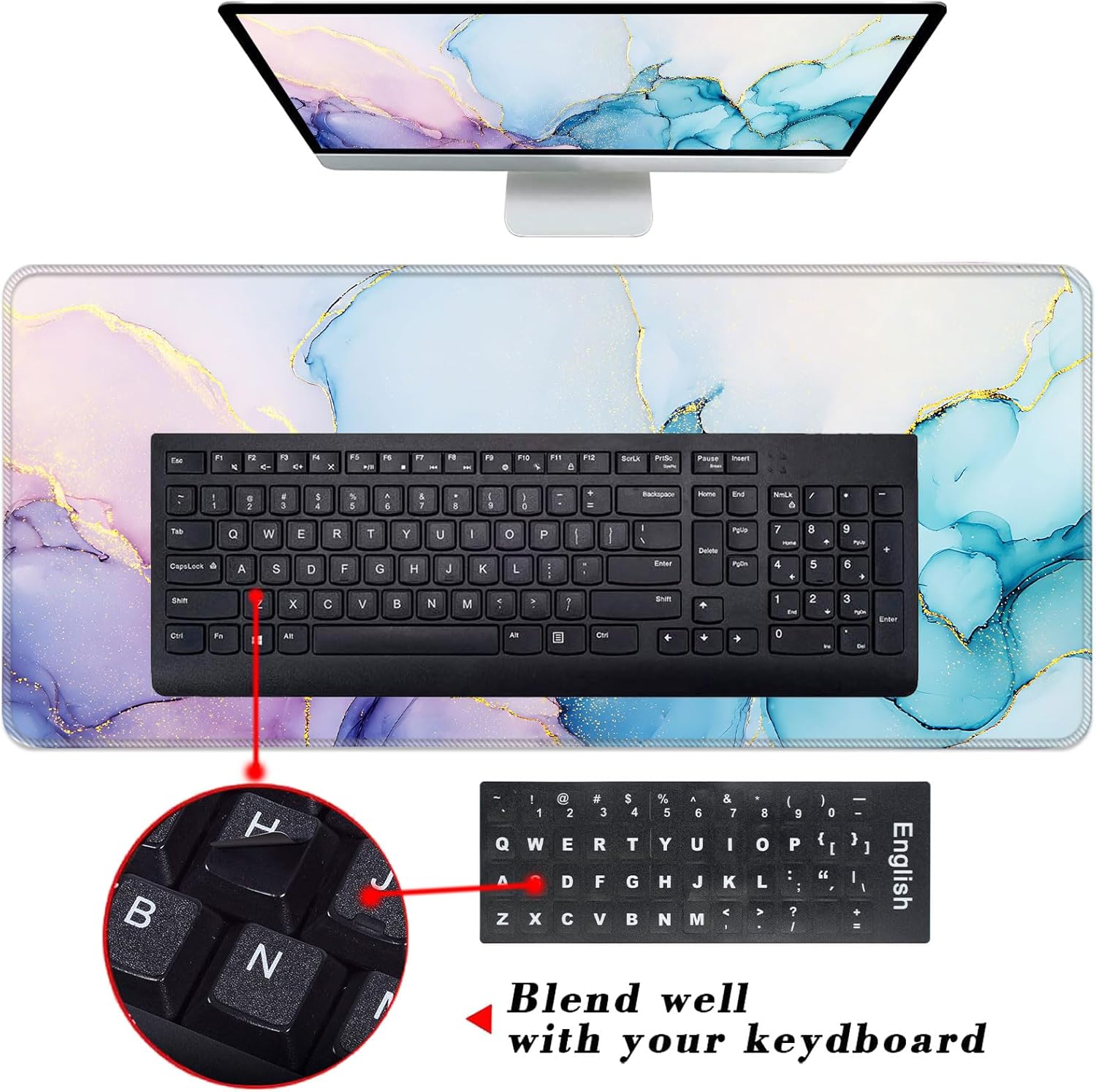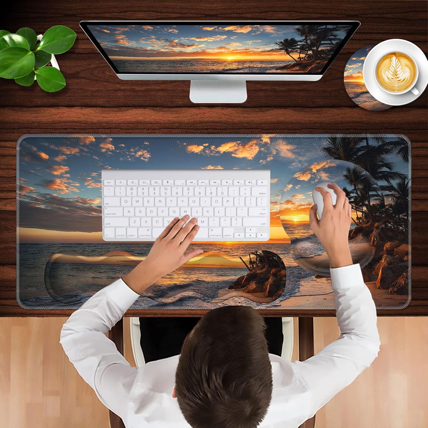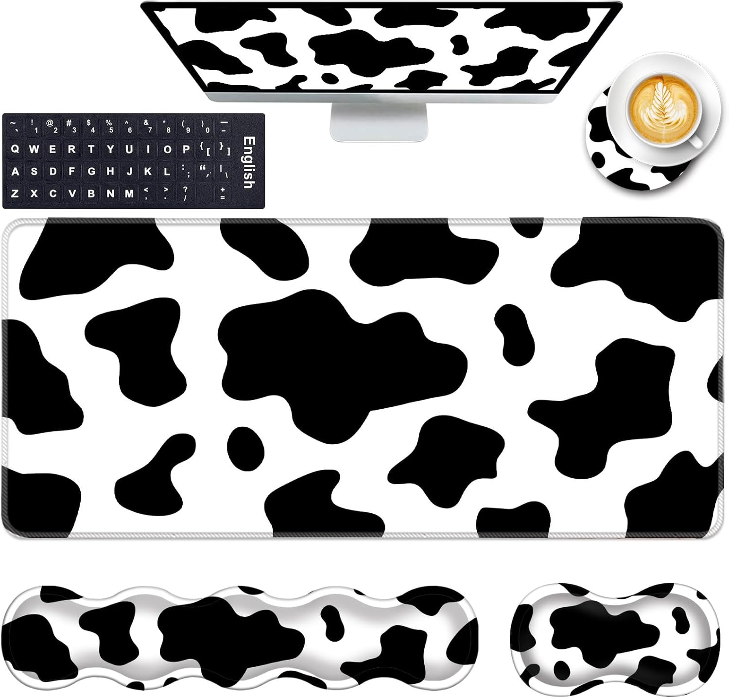 CICPLKSE : Art Print, So Beautiful The aim of the mouse pad set is: Relief from the stress disorder. It helps with problems associated with excessive use of the mouse or any other contraption that requires massive movement of the wrist, like carpel tunnel syndrome. Keeps wrists in neutral position. The product helps to perfectly align your wrists; it also supports them when you are not doing anything. Do you suffer from wrist sore or wrists would get red when using computer after a long time? Chose CICPLKSE mouse pad with wrist rest will give your everything in comfort you needed. The bottom work well keeping itself on the surface being used so it won't slide around while in use. Memory foam padding let’s your hands and wrists sink in soothingly and you can work or play computer game happily for hours or longer. Fatigue-free Typing Design reduced the strain on wrist, helps to avoid joint and wrist issues. Specifications: Wrist Filling Material: Memory form Package Included: 1x Large Desk Mat(35.4" x 15.7") 1x Keyboard Wrist Rest(17.32" x 3.55" x 0.98") 1x Mouse Pad with Wrist Rest(8.66" x 9.84" x 0.86") 1x Coaster(3.93" x 3.93")1x Keyboard Stickers(7.09x2.56inch)Order CICPLKSE Mouse Wrist Pads today and say goodbye to uncomfortable and painful typing. Any questions, please contact CICPLKSE, we will try our best to satisfy you.