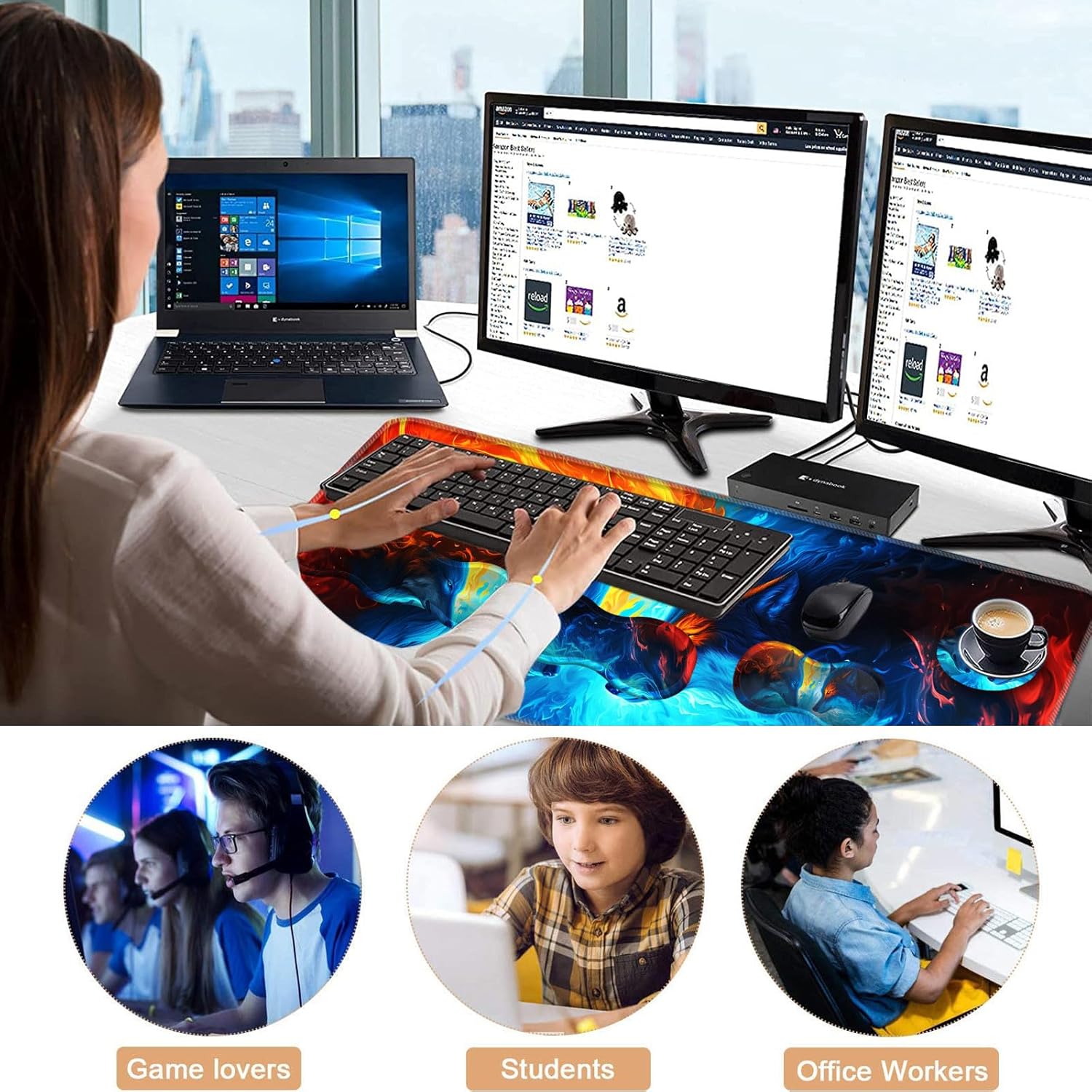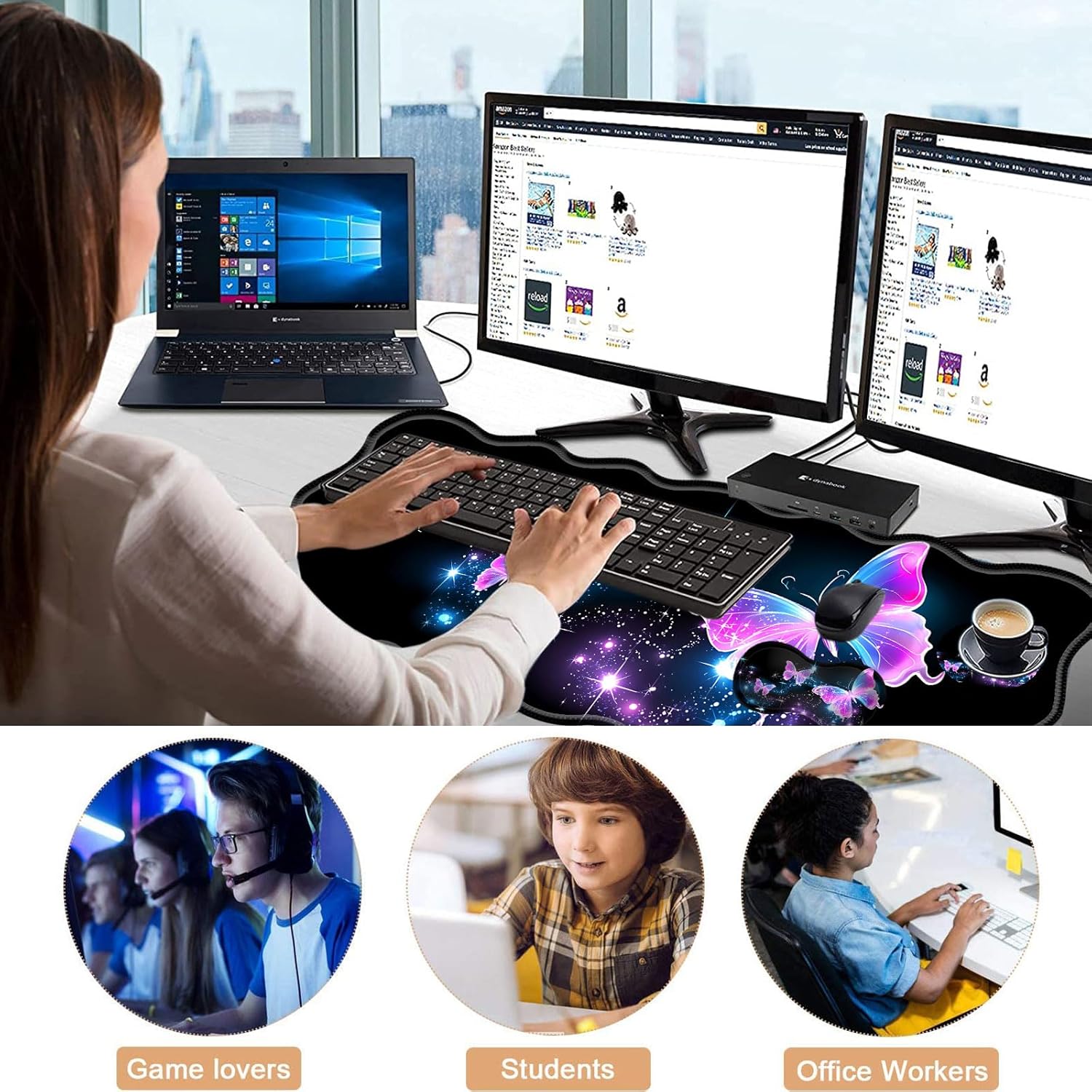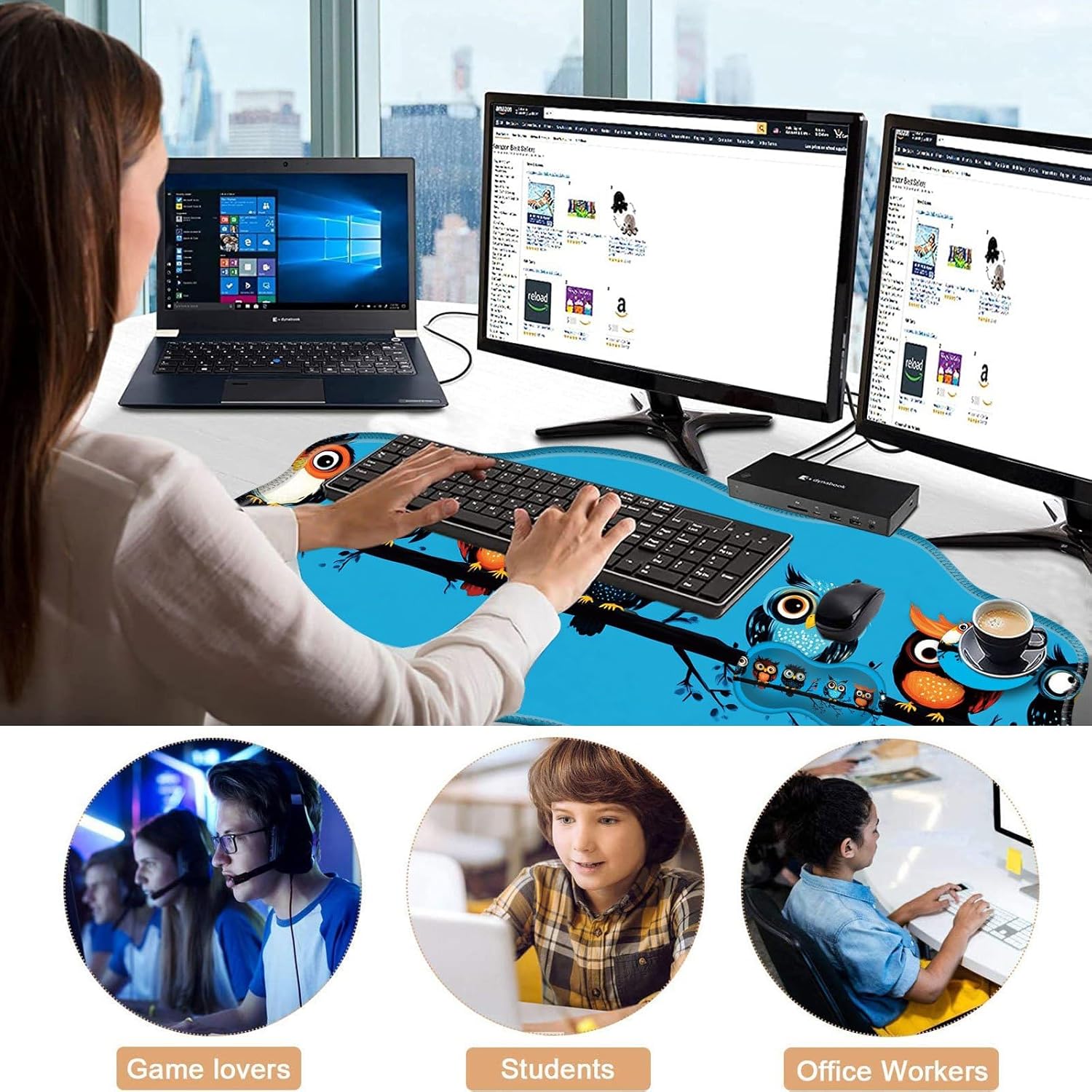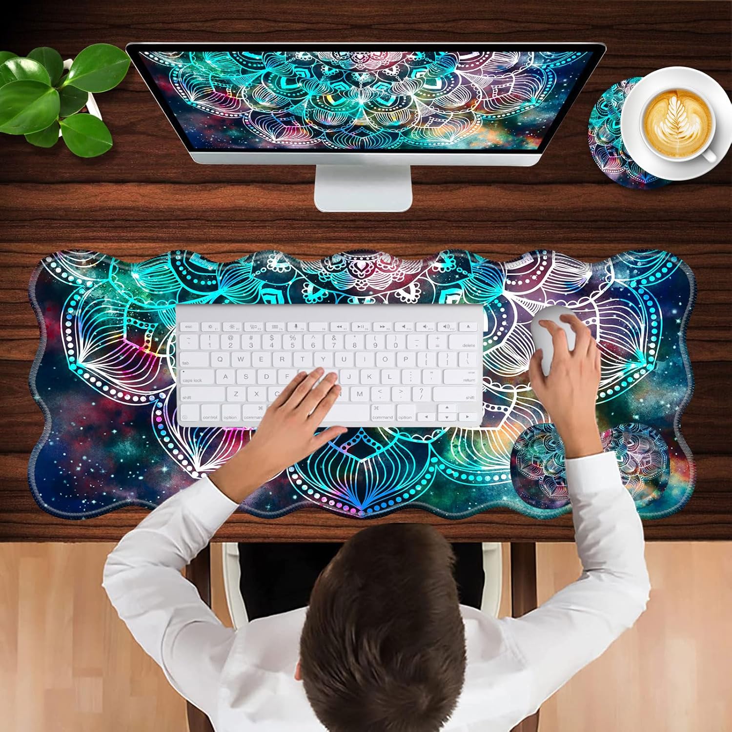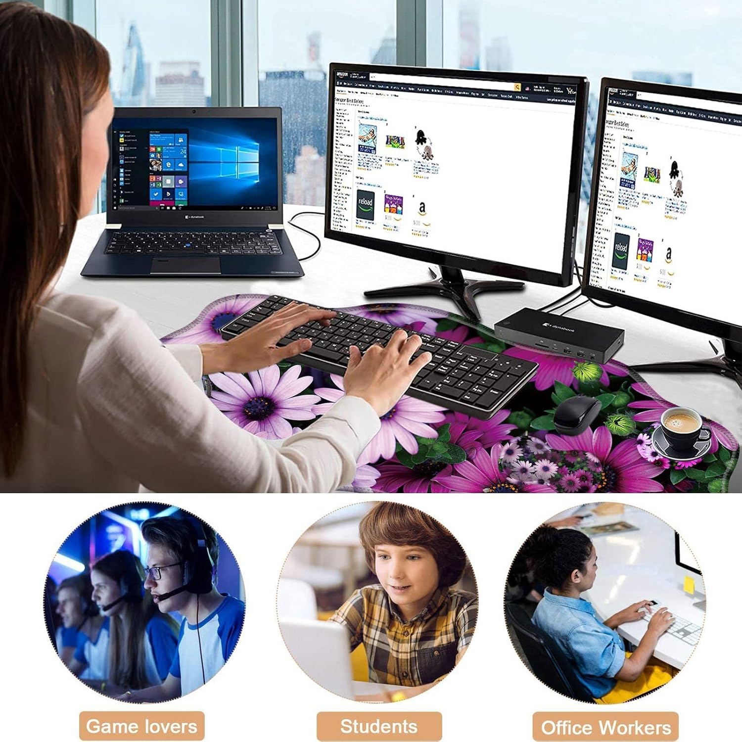 CICPLKSE : Art Print, So Beautiful The aim of the mouse pad set is: Relief from the stress disorder. It helps with problems associated with excessive use of the mouse or any other contraption that requires massive movement of the wrist, like carpel tunnel syndrome. Keeps wrists in neutral position. The product helps to perfectly align your wrists; it also supports them when you are not doing anything. Do you suffer from wrist sore or wrists would get red when using computer after a long time? Chose CICPLKSE mouse pad with wrist rest will give your everything in comfort you needed. The bottom work well keeping itself on the surface being used so it won't slide around while in use. Memory foam padding let’s your hands and wrists sink in soothingly and you can work or play computer game happily for hours or longer. Fatigue-free Typing Design reduced the strain on wrist, helps to avoid joint and wrist issues. Specifications: Wrist Filling Material: Memory form Package Included: 1x Large Desk Mat(35.4" x 15.7") 1x Keyboard Wrist Rest(17.32" x 3.55" x 0.98") 1x Mouse Pad with Wrist Rest(8.66" x 9.84" x 0.86") 1x Coaster(3.93" x 3.93")1x Keyboard Stickers(7.09x2.56inch)Order CICPLKSE Mouse Wrist Pads today and say goodbye to uncomfortable and painful typing. Any questions, please contact CICPLKSE, we will try our best to satisfy you.