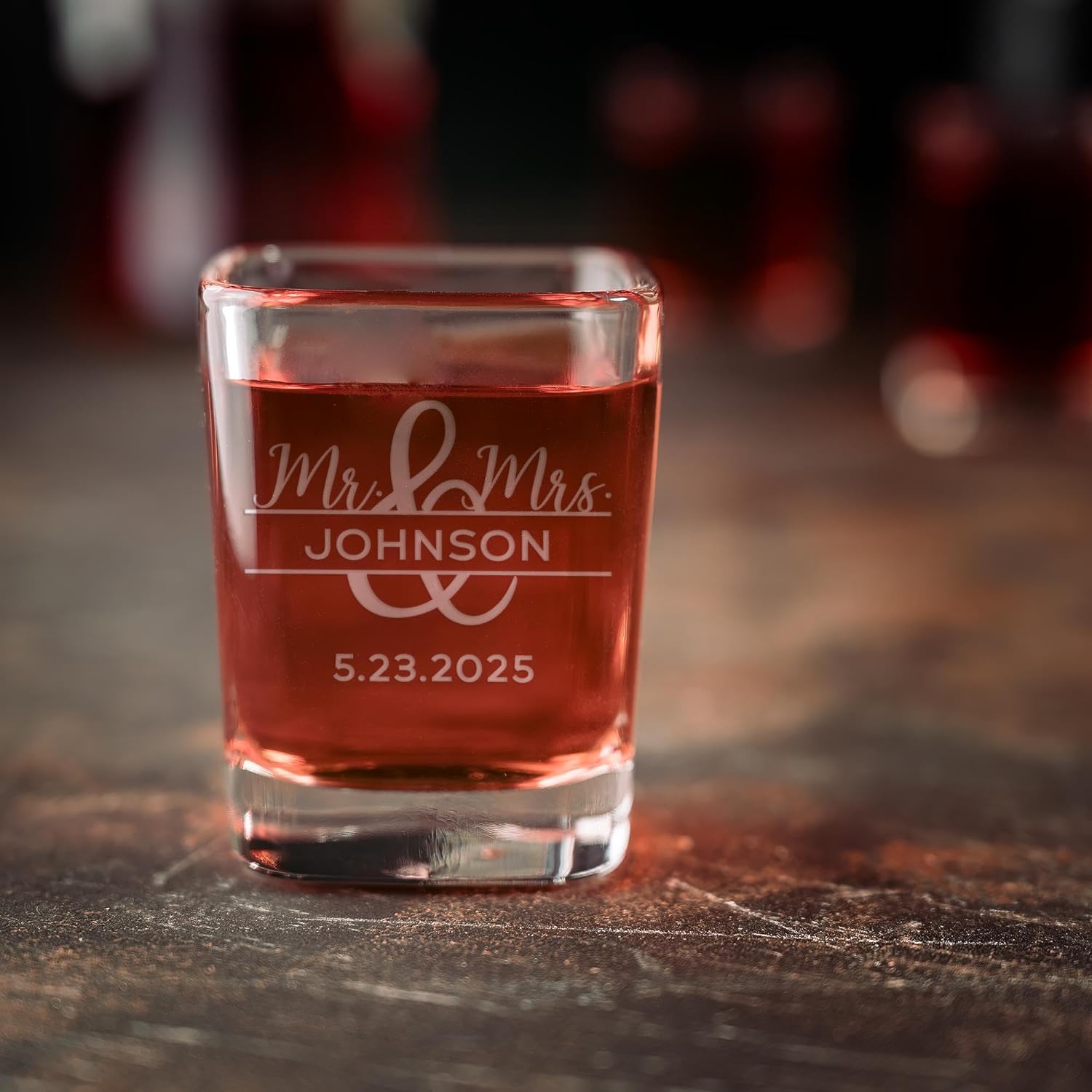 Celebrate your love story with the Mr & Mrs Ampersand Custom Shot Glass, a perfect keepsake for newlyweds or anniversaries. Toast to the perfect union with our Mr & Mrs Ampersand Custom Shot Glass, a beautifully engraved keepsake that celebrates love and partnership. Each 2oz shot glass is laser-engraved with the classic "Mr & Mrs" design, linked by a stylish ampersand, and personalized with the names of the couple. This thoughtful touch adds a unique and romantic flair, making it an ideal gift for weddings, engagements, or anniversaries.