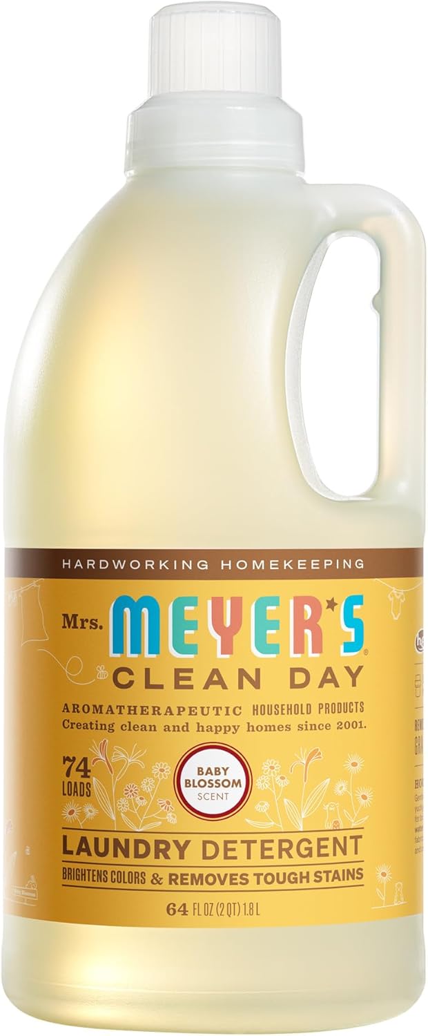 Mrs. Meyer's Clean Day biodegradable formula laundry detergent features hardworking yet gentle cleaning agents, while also providing a special, singular scent for your home. Rain Water scented laundry detergent has a fragrance so clean. Drops of Rain Water fall on leaves and noses and fill the air. Effective yet gentle on clothes, our concentrated laundry soap really packs a punch when it comes to removing dirt and grime. Contains surfactants from plant-derived sources, dirt and stain-fighting enzymes, essential oils, other thoughtfully chosen ingredients and, of course, are always made with a cruelty-free formula. This biodegradable formula liquid detergent is HE compatible. Concentrated for 64 loads of laundry. Also available in other garden-inspired scents and products such as body lotions, liquid hand soaps, candles, and so much more! Mrs. Meyer's – Rooted in Goodness.