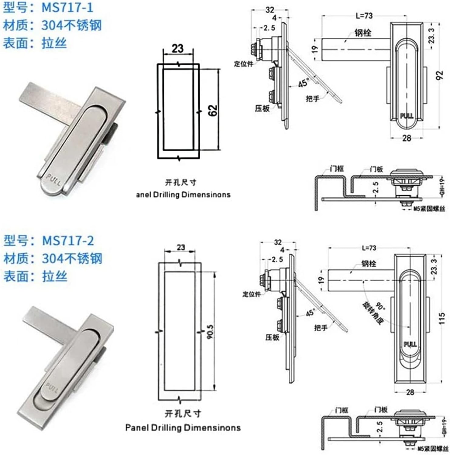 LocksMS717 Metal Box Plane Lock Distribution Box Cabinet Industrial Machinery And Equipment Pull Handle Cam Lock 1PcsModel Number : MS717