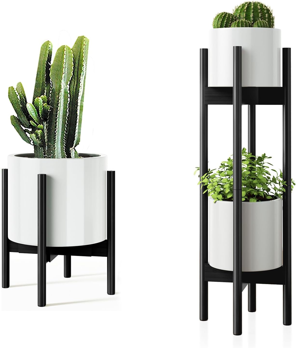 • 【Second Product】Plant Stand Black 2 Pack-You can use the 2 mid-century plant stands alone, or use pins to connect the 2 pieces to achieve a 2 tier-tall plant stand. The bamboo plant stand fits pots in sizes 8 9 10 11 12 inches.