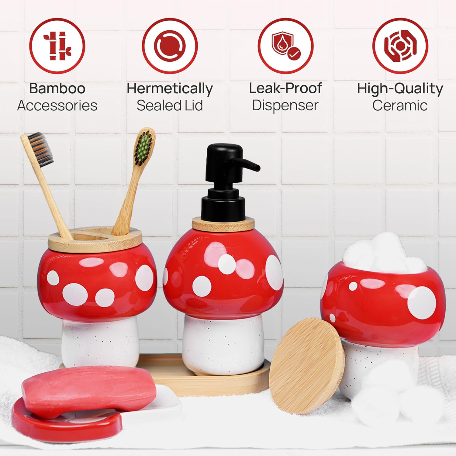 | Included Components | Bamboo Tray, Canister, Liquid Soap Dispenser, Soap Dish, Toothbrush Holder |