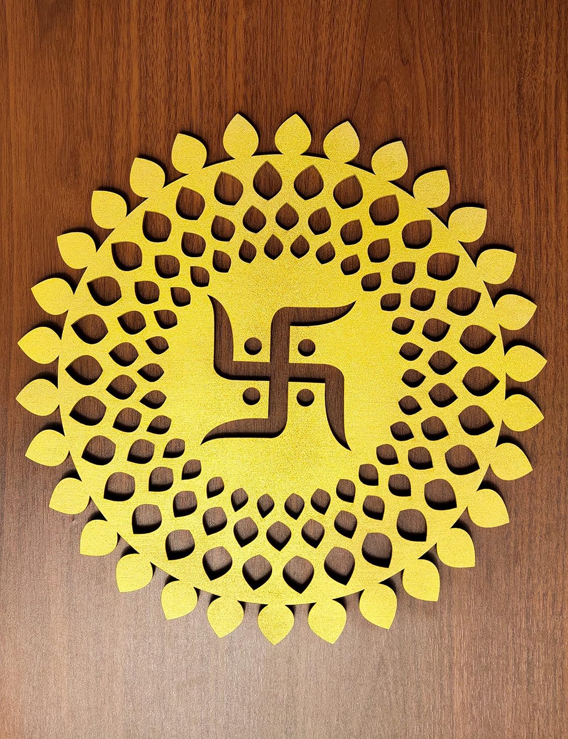 My Dream Carts Golden Om Round Decorative Wall Art Mdf Wooden Om Chakra For Temple, Living Room, Bedroom, Office, Hotel, Home Decor Items, Gift Item, Mandala Wall Hanging For House Decoration The OM Wall Hanging by My Dream Carts—a stunning masterpiece that embodies elegance and tranquility. Crafted with precision and attention to detail, this wall hanging is designed to bring a touch of serenity and positivity to any space. Specifications: Size: This OM Wall Hanging available in many sizes like 15X15 CM 20X20 CM 25X25 CM 30X30 CM 45x45 CM 60X60 CM Making it ideal sizes for various interior places. Material: My Dream Carts prioritizes quality, and this wall hanging is no exception. It is crafted using high-quality MDF wood (engineered wood) that ensures durability and longevity. Finishing: The OM Wall Hanging boasts a flawless laser-cut finish, showcasing intricate details that are sure to captivate the eye. Origin: This OM Wall Art is proudly made in India, a country renowned for its rich cultural heritage and artistic craftsmanship. Color: The OM Wall Hanging is adorned in a stunning golden hue, symbolizing richness, purity, and enlightenment. The golden color adds a touch of elegance and sophistication, making it a captivating focal point in any room. Versatility: The OM Wall Hanging by My Dream Carts is a versatile piece of art that complements various settings. Whether it's your living room, bedroom, meditation space, office, or any other area, this wall hanging effortlessly adds a touch of aesthetic allure.