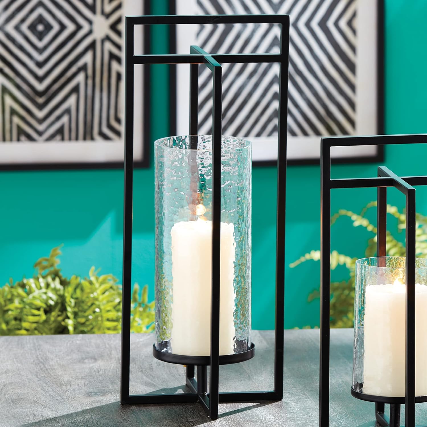 Mondrian-inspired, simple geometric shapes with intersecting planes make for a contemporary look. This indoor lantern is tailor-made for the modern space.
