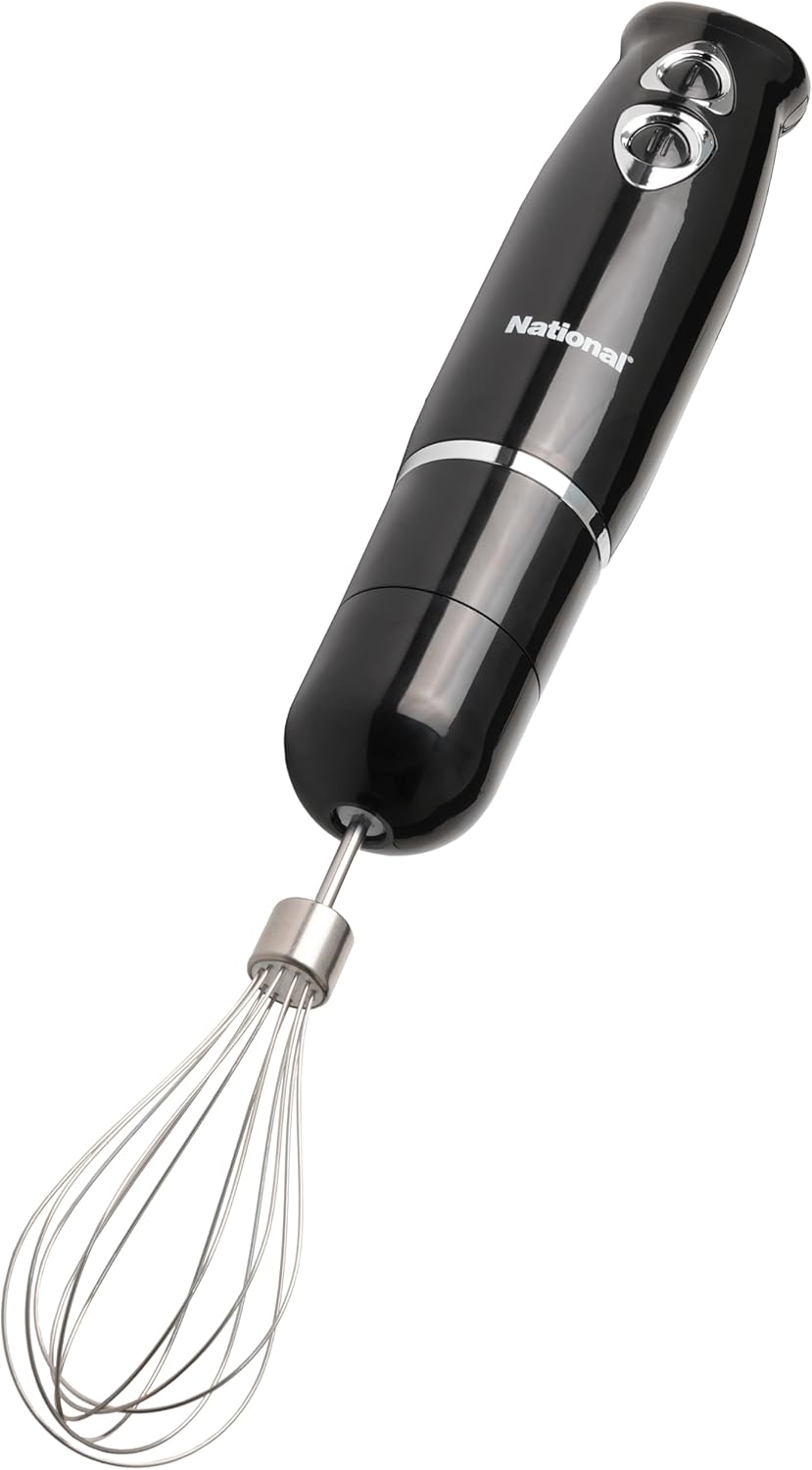 "National NA-3104HB 4-in-1 Multi-Purpose Immersion Hand Blender, designed to elevate your culinary experience to new heights. With its powerful 500W motor, this kitchen essential lets you enjoy cooking faster and with greater precision. Whether you're blending, pureeing, mashing, chopping, or whisking your favorite foods, our Handheld Blender is engineered to deliver smooth operation and unmatched control. Thanks to its Comfortable Splash Control Technology, you can say goodbye to messy kitchen mishaps. What sets our National NA-3104HB 4-in-1 Multi-Purpose Immersion Hand Blender apart is its versatility. It comes with interchangeable attachments, including a stainless-steel immersion blender, a food chopper with an impressive 860ml (3.5 cups) capacity, a heavy-duty beaker with a 600ml (2.5 cups) capacity, and a stainless-steel whisk. This means you can tackle a wide range of culinary tasks with ease. The Handheld Blender features two blending speeds, with a pulse-activated sensor that offers low and high settings, ensuring you achieve the perfect texture and consistency every time you cook. With a rotational speed of 14000RPM รยฑ 10%, it delivers powerful performance while remaining efficient. For your convenience, the National NA-3104HB 4-in-1 Multi-Purpose Immersion Hand Blender is designed with a 1.3-meter power cord, giving you flexibility in the kitchen. It operates at a power input of 110-120V~, 60Hz, and is ETL approved, guaranteeing safety and reliability. Whether you're a professional chef or a home cook looking to elevate your culinary skills, our Handheld Blender is the perfect companion to make your cooking adventures faster, easier, and more enjoyable. Say goodbye to kitchen hassles and hello to culinary perfection with our exceptional Handheld Blender."
