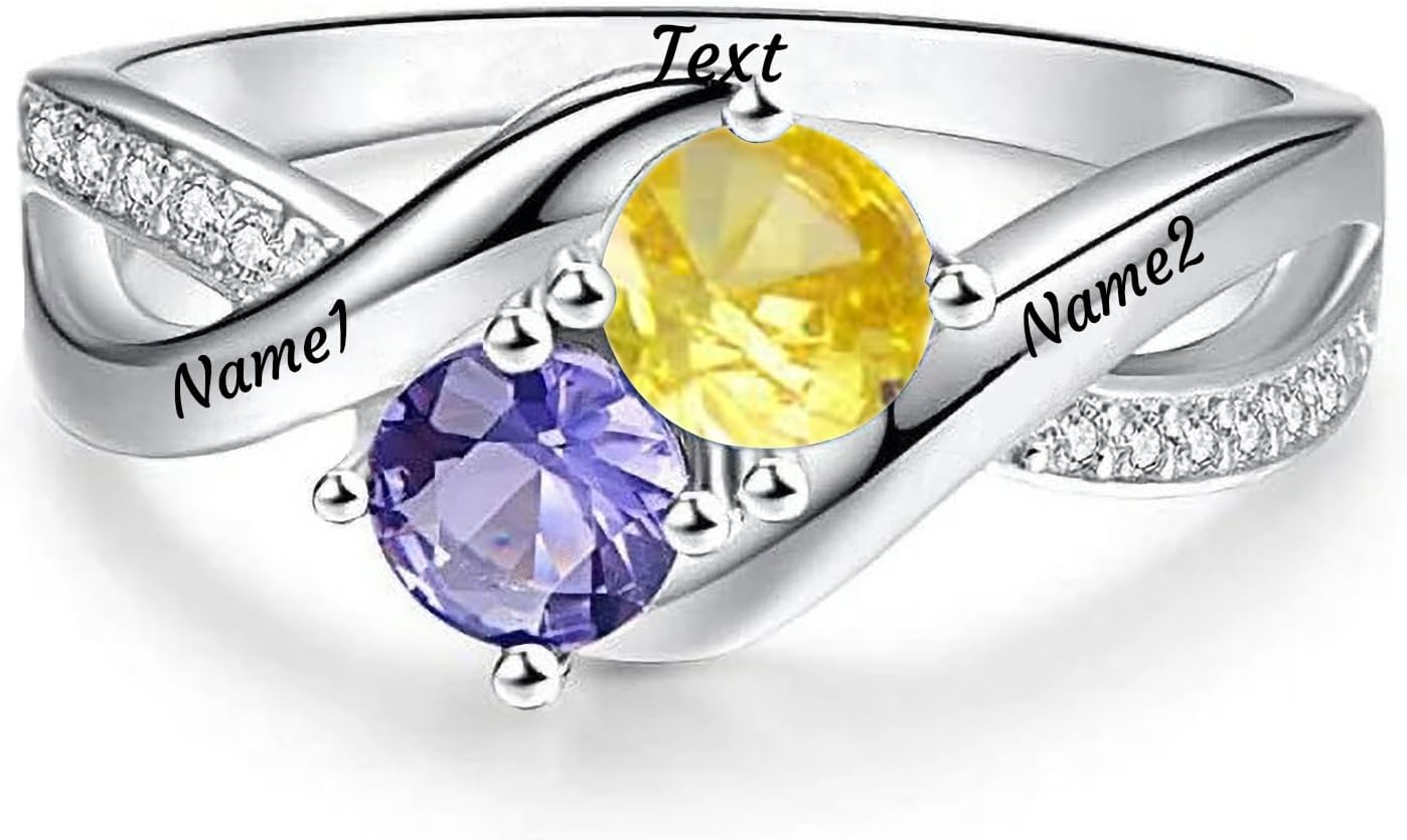 Ndocex Natural Diamond Personalized Mother Ring with 2 Birthstones 925 Sterling Silver Customized Name Ring Family Ring for Women Mother Wife Birthday Christmas Size 4 to 13Details: 【Custom Mother Ring】: A beautiful and meaningful tribute, it is your expression of love for your mother. Symbolizing the love, care, and devotion a mother holds for her family【High Quality Material】: Crafted from premium 925 Sterling Silver, Inlaid with Natural Diamonds. Hypoallergenic and resistant to oxidation, these safe materials ensure both comfort and longevity. With authenticity guaranteed by stamps of S925 【Personalized Gift】: Customize this 2-stone silver ring for someone special in your life. Each birthstone is chosen by you to represent the birthday of your loved one. Plus, you can engrave 2 names + 1 interior text【Exquisite Packaging Box】: Your name ring comes in a beautifully packaged gift box, perfect for both display and safekeeping. You can treat yourself or give it as a decent gift, both have special meaning 【After-Sales Service】: Should any concerns arise with your purchase, please don't hesitate to reach out to us. We're committed to resolving any issues promptly and ensuring your satisfaction