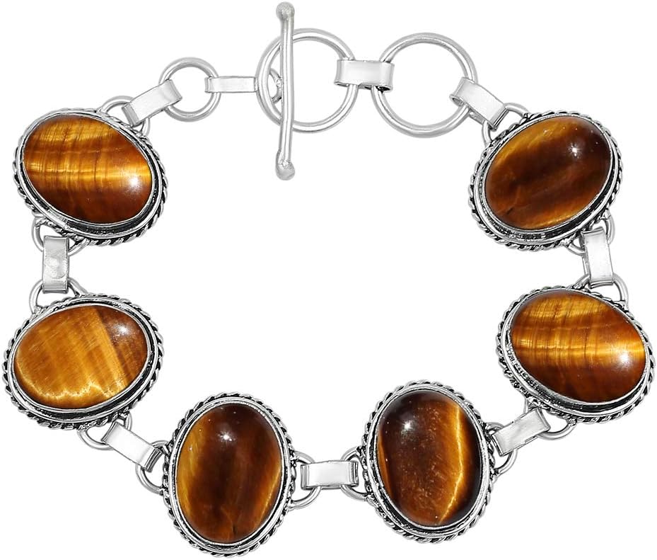 Introducing our stunning Natural Gemstones Silver-Plated Statement Link Chain Adjustable Bracelet, a perfect fusion of elegance and contemporary design. This exquisite piece features genuine gemstones, each carefully selected for their rich multi hues and unique natural patterns, making every bracelet truly one-of-a-kind. The gemstones are expertly set in a high-quality silver-plated framework, enhancing their vibrant color while ensuring durability and a radiant finish. The bracelet measures approximately 7.5 inches in length, with an adjustable chain extending an additional inch to accommodate various wrist sizes comfortably. It secures with a sturdy toggle clasp, providing both ease of use and peace of mind. Designed to complement any attire, this bracelet transitions seamlessly from casual daywear to sophisticated evening ensembles. Its timeless appeal makes it not only a versatile accessory but also a thoughtful gift for birthdays, anniversaries, or special occasions. Each bracelet is handcrafted by skilled artisans, ensuring meticulous attention to detail and exceptional quality. Presented in an elegant jewelry box a pouch, it arrives ready for gifting or as a cherished addition to your own collection. Embrace the allure of natural gemstones and elevate your style with this captivating gemstones statement bracelet.