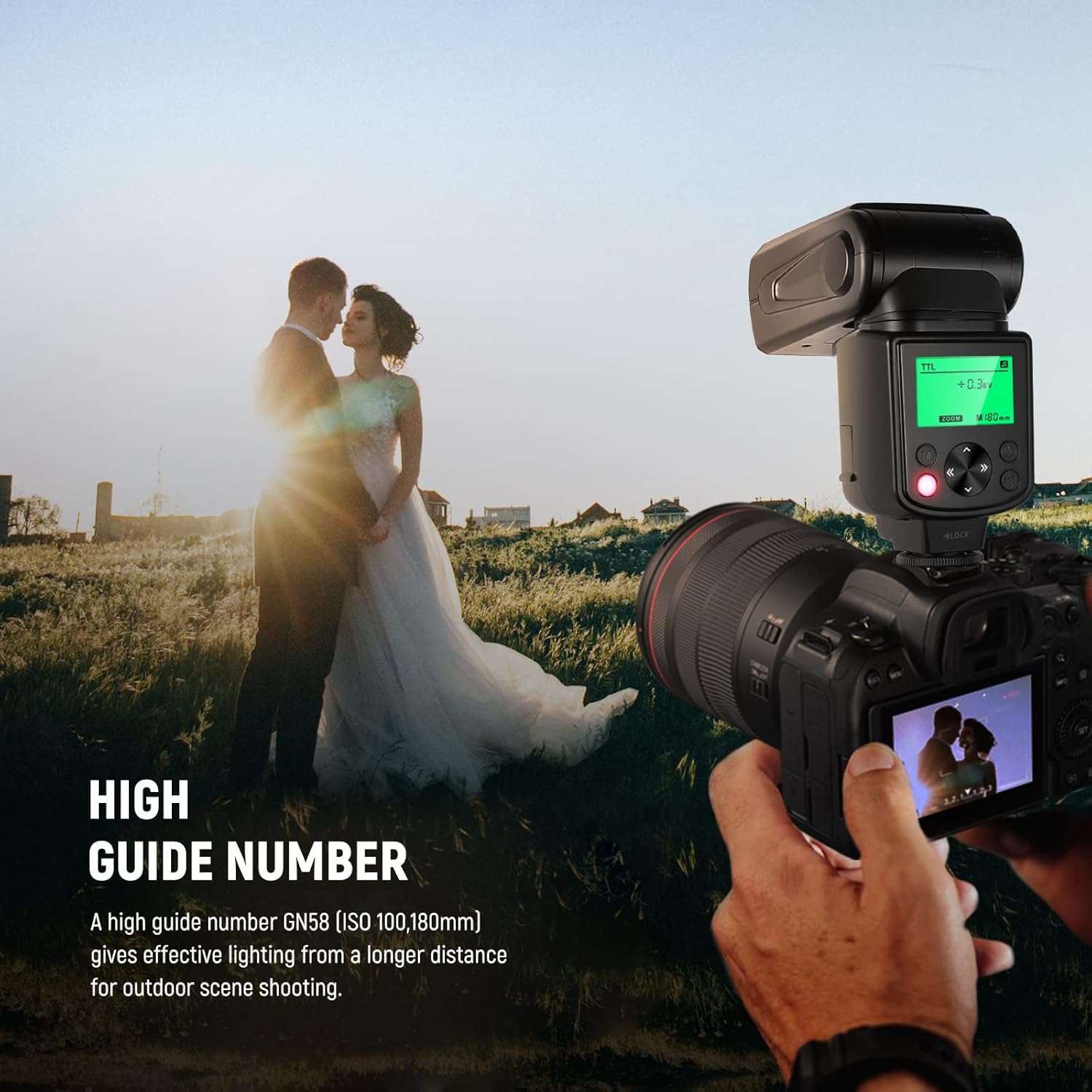 | Guide Number | GN58 (ISO 100, 180mm) |