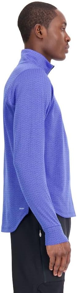 Stay warm on cold-weather runs with the New Balance NB Heat Grid Half Zip featuring moisture-wicking and warming NB HEAT technology to help you stay focused on your performance, not the conditions. This men's long sleeve shirt has a textured fleece fabric for added style, a woven chest pocket for essential storage, and thumb loops to ensure a close, comfortable fit.