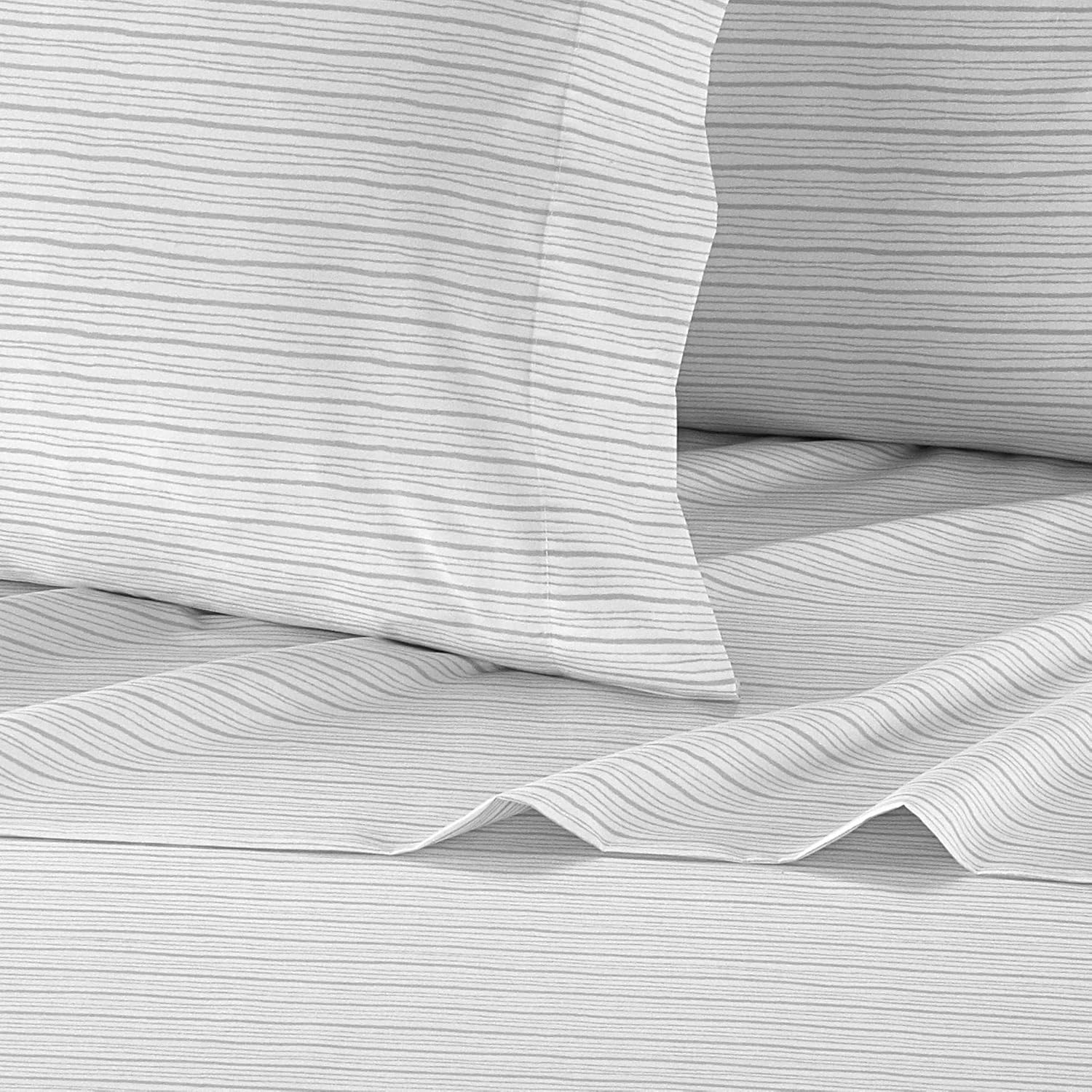 Nothing makes your bedroom decor feel more complete and put together than knowing you’ve got the perfect set of sheets. This super soft sheet set features a unique striped print on a solid color background. Relax in style and rest in luxurious slumber with the Samara sheet set from New York & Company complete with one fitted sheet, one flat sheet, and two pillowcases. Specifications: • Size: Queen • Color Scheme: Grey • Piece Count: 4 • Set Includes: • 1pc Striped Fitted Sheet (60” x 80” + 14") • 1pc Striped Flat Sheet (90” x 102”) • 2pc Striped Pillowcases (20” x 30") • Materials: Luxuriously brushed microfiber fabric Fabric and Design: • Silky soft brushed microfiber fabric • Unique striped pattern print on a solid color background Features: • Luxuriously soft feel for a great night sleep with less tossing and turning • Built to last with premium fabrics and expert stitching Care Instructions Dry clean preferred. Machine washable, use front loader machine (or top loader without agitator) to avoid tearing, use cold water on gentle cycle, tumble dry low * Add 2 tennis balls to the dryer to speed up drying and add fluffiness The digital images we display have the most accurate color possible. However, due to differences in computer monitors, we cannot be responsible for variations in color between the actual product and your screen.