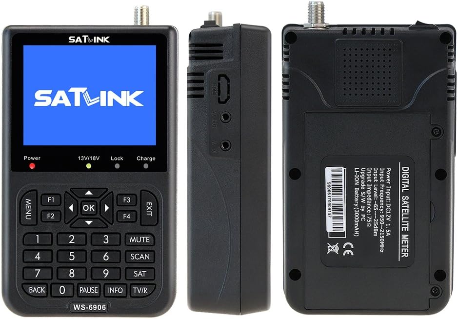 What can you do in a few minutes? Now I can tell you. You can find the satellite TV signal and high-quality picture signal that you want. Are you crazy about the bad signal of football match channel and direct TV? Do not worry, our product can give you a perfect enjoyment. 1.Introduction 100% brand new and high quality ★WS-6906 has a GREEN "LOCK" indicator light to positively ID the satellite you are looking for. ★Channel picture, signal strength and signal quality can be showed on LCD Screen after you set up your local DVB-S Parameter. ★Using the parameters of satellite, you can set and align a satellite dish quickly. ★WS6906 Meter can easily and accurately aim your dish plus View the channel while aiming the dish. ★It includes high capacity Lithium Battery 3000mAh which works for more than 4 hours after fully charged. 2.Specification -3.5 inch High definition TFT LCD Display -Fully DVB-S/MPEG-2 compliant -SCPC&MCPC receivable from C/KU band satellites -PAL-NTSC auto-conversion -Support Auto ,NIT and PID search -Measure Parameters: intensity, quality and bit error rate -Supports DiSEqC 1.0/1.2, 0/22Khz Tone -Support both AV out and AV in -Both light and beep for the indicator of signal locked -RS232 port for software upgrades -Built-in speaker -LNB short protect and alarm Easy Graphic Menu Interface -8.4V/3000mAh Li-ion battery included -Max operating time: 4 hours -Input: AC 100-240V 50/60Hz -Output: DC 12V -Item size: 16.5 * 9 * 4.5cm -Item weight: 440g 3.Package including -1 * WS-6906 Satellite Finder -1 * Black Protective Bag -1 * Strap -1 * Car Charger -1 * Power Adapter -1 * AV Cable