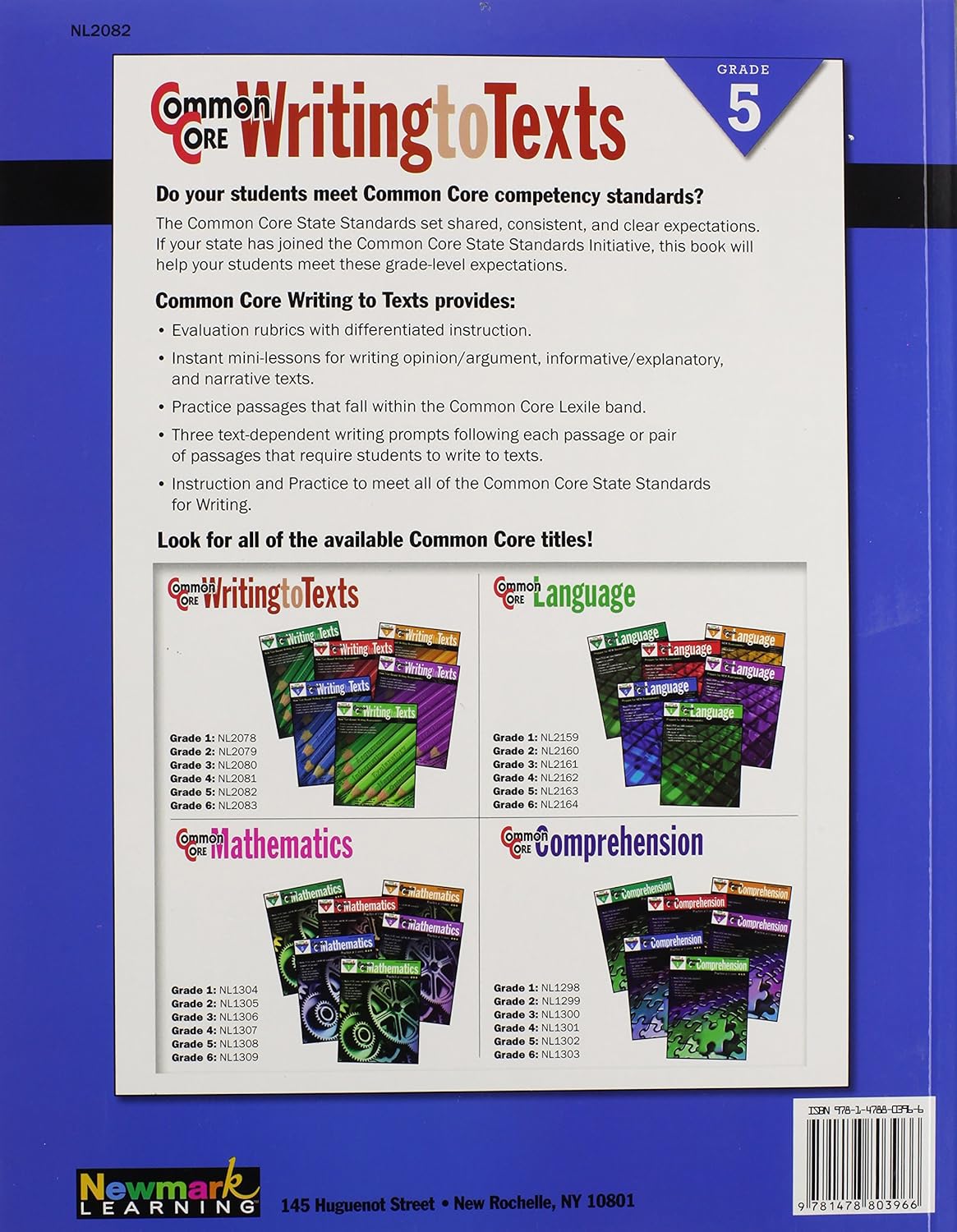 Newmark Learning Grade 5 Common Core Writing to Text Book