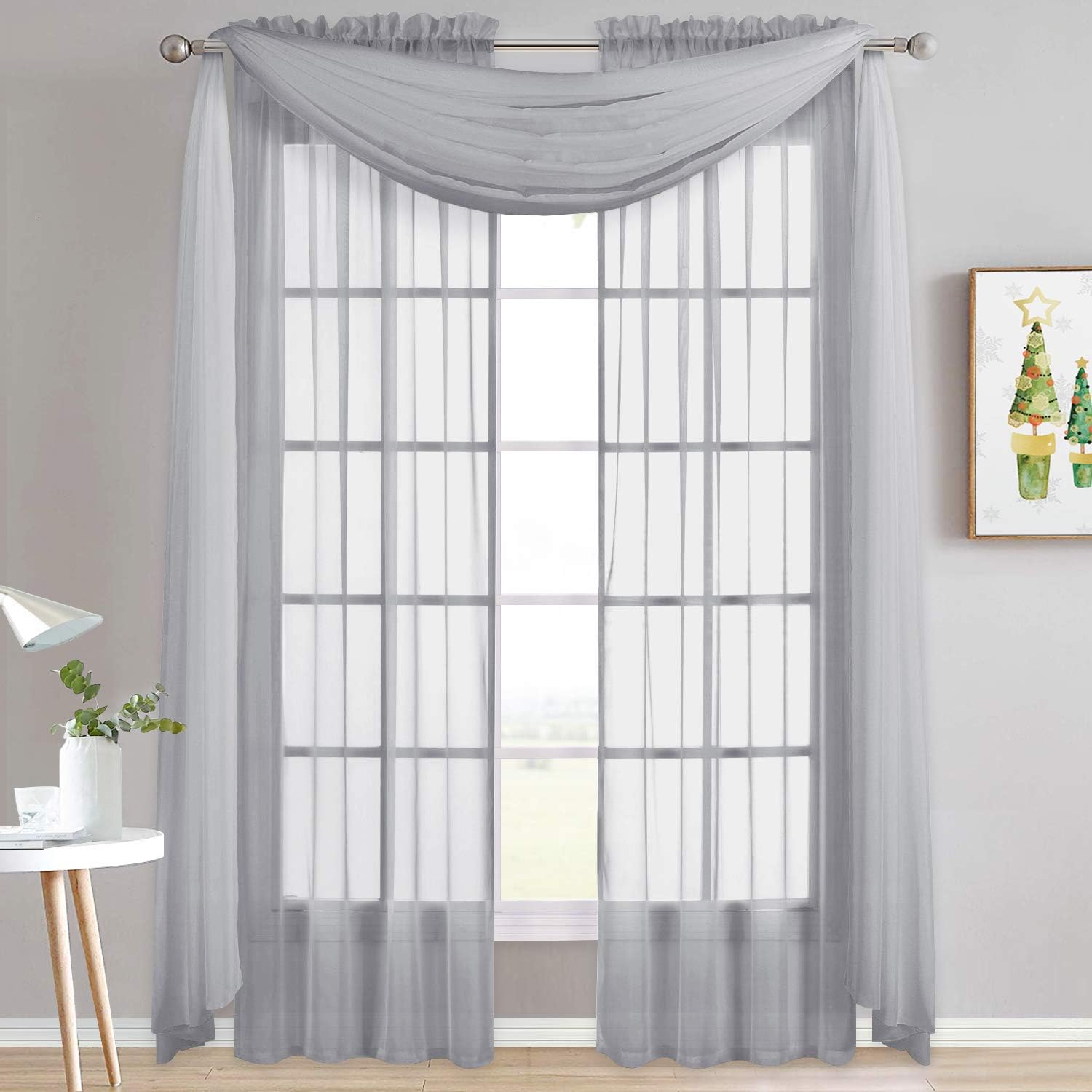 ThisNICETOWN Ombre Sheer Scarf Valancescan have casual or stylish waterfall looks, but there are still more of it. The scarfs are versatile and dreamy which will be a perfect choice for your kids such as birthday party and bedroom decor, especially for you princess girls and daughters. Besides, it's will be your best choices for the outdoor indoor ceremony. WELL STYLED:These voile sheer scarfs are packaged as 2 panels, each measures 60" wide by 216" long.The scarf curtains are perfect for tables, big events such as wedding arch, bed and pergola canopy, living room and bedroom window decor, also DIY is a great choice. Soft voile sheer texture is airy and breathable, providing you multiple possibilities. EASY CARE:Voile polyester construction ensures that this item is long-lasting and easy to maintain.Machine washable or dry clean. Quick iron or steam clean when needed.ABOUT NICETOWN In the NICETOWN store, different styles of sheer curtains, valance, blackout curtains and so on can match your variety of demand, looking forward to your visiting.