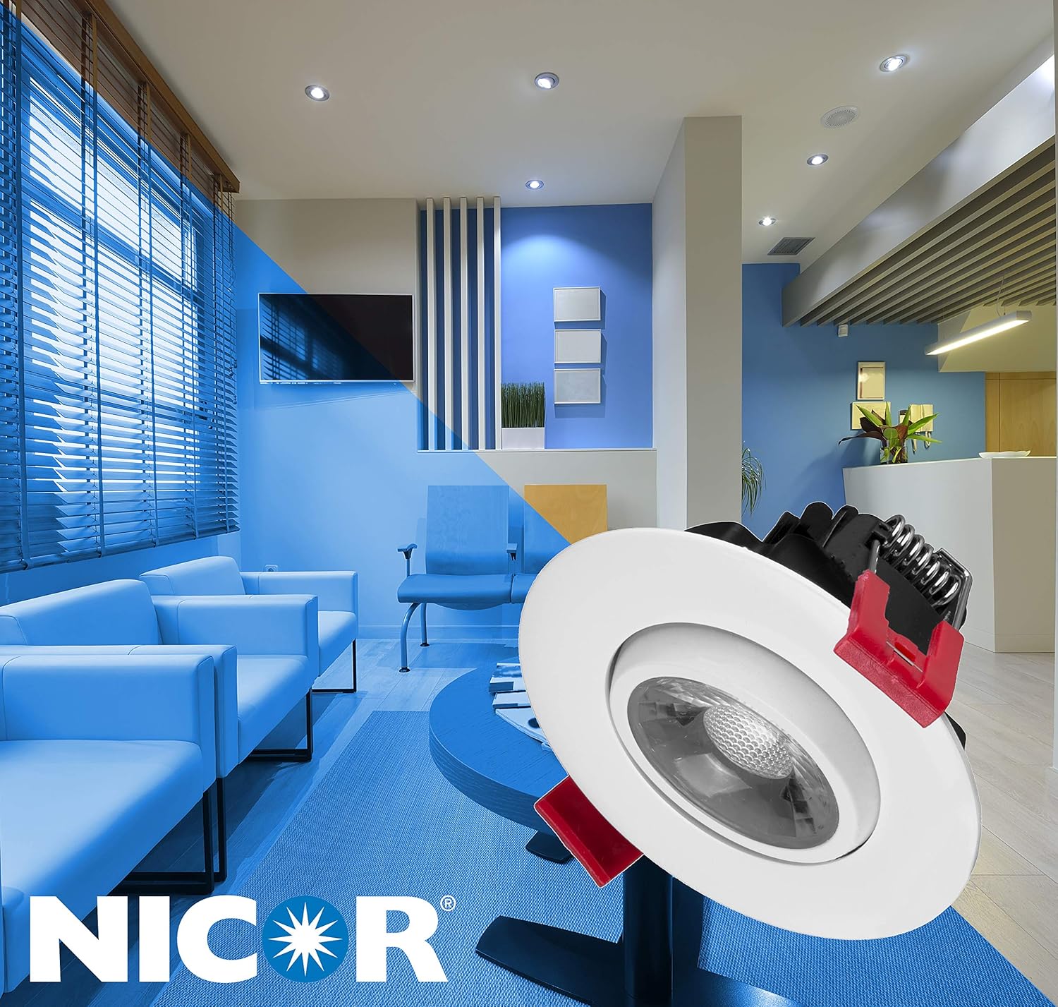 The DGD3 LED Downlight Gimbal features the latest in performance LED Downlight technology, designed to create an attractive visual aesthetic that's incredibly easy to install. The high-performance DGD3 is Dimmable and features a 93 CRI rating, with an R9 value exceeding 50, making it one of the highest quality light fixtures on the market. Installation does NOT require a recessed housing or junction box, only a simple 2.75" diameter cut-out in the ceiling using the provided template. The elegantly designed fixture and off-board driver (included) allows for a more flexible installation and an increased lifespan thanks to the superior heat management system separated from the LED module itself. The DGD3 features adjustable spring-loaded retention tabs for a secure fit, eliminating the need for a recessed housing or junction box. Adding an adjustable, multi-directional light system to highlight artwork or architectural design features in your home just got easier. Freedom from having to use a housing or junction box allows this light to be installed in places others simply cannot. Available in Black, Nickel, Oil-Rubbed Bronze, and White. Choose from 2700K, 3000K, 4000K, or 5000K Color Temperatures. The DGD3 is Energy Star rated, Insulation Contact rated (IC-rated), Title 24 Compliant, Damp-Location rated, and protected by NICOR's 5-Year Limited Warranty.