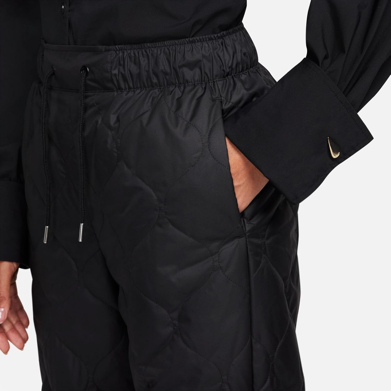 Add some warmth—but keep looking cool—when you slip into these quilted pants. The synthetic fill helps keep you cozy on even the coldest days, while the ripstop fabric adds durability. A relaxed fit through the legs pairs with an adjustable waistband to give you both freedom of movement and a secure feel. Truly the best of both worlds. Benefits Synthetic fill helps keep you insulated and warm. Elastic waistband and drawcord create a snug fit. Join Nike history by rocking the Windrunner 26-degree line just above the knee. Side-seam pockets provide quick storage for keys, phone and cold hands. Product Details 100% polyester Machine wash Imported Shown: Black