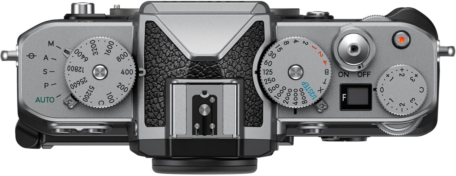 The Nikon Zf is a full-frame mirrorless camera with a classic FM2-inspired design, featuring a 24.5MP BSI CMOS sensor, EXPEED 7 processor, 30 fps burst shooting, advanced subject tracking, 5-axis stabilization, UHD 4K video, dual card slots, and a weather-sealed body.Iconic Retro DesignInspired by the Nikon FM2, the Zf features aluminum dials, engraved markings, and a tactile layout that blends vintage design with modern functionality.24.5MP Full-Frame BSI CMOS SensorDelivers outstanding image quality, impressive low-light performance, and reduced noise at high ISO. Includes a 96MP high-resolution mode for ultra-detailed photos.EXPEED 7 Image ProcessorThe same powerful engine found in the Z9 and Z8 ensures fast performance, accurate color rendering, and support for advanced deep learning subject detection.High-Speed Continuous ShootingShoots up to 30 fps with the electronic shutter or 14 fps with the mechanical shutter, with pre-release capture saving frames up to 1 second early.Advanced Autofocus with Deep LearningIntelligent subject recognition tracks people, pets, birds, cars, bikes, trains, and aircraft. Eye-Detection AF ensures tack-sharp focus in both photo and video.5-Axis In-Body Image Stabilization (VR)Compensates up to 8 stops of camera shake for sharper handheld shots, even at slower shutter speeds. Works with both Z-mount and adapted F-mount lenses.Professional-Quality VideoRecords oversampled 6K-to-4K UHD up to 30p and Full HD 120p slow motion, with 10-bit H.265 internal recording in SDR, HLG, and N-Log formats.Immersive Vari-Angle Touch LCD and EVFA 3.2-inch vari-angle touchscreen enables flexible shooting, while the high-resolution EVF supports precise control with eye-to-viewfinder use.