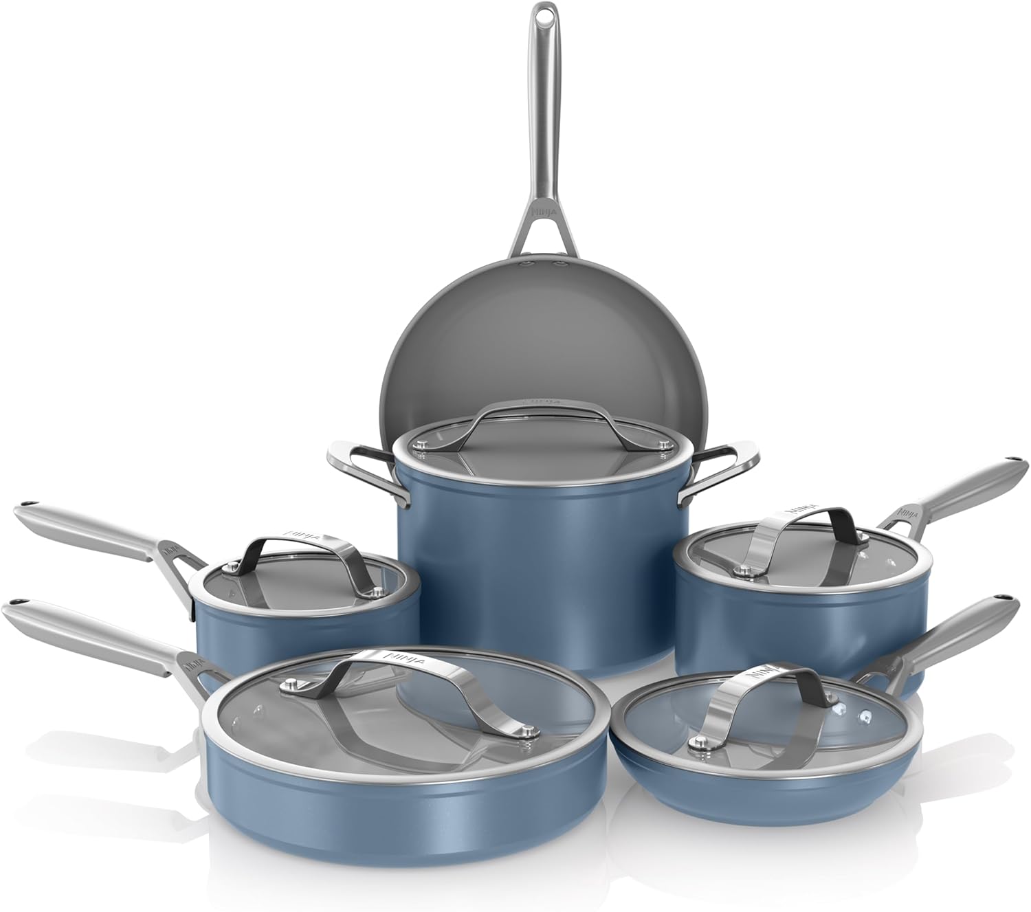 | Item Type Name | Ceramic Pro 11-Piece Cookware Set, Non-Stick Pots & Pans Set with Glass Lids, PTFE Free, Ceramic Coated, Stainless Steel Handles, Stove to Oven Safe to 660°F, All Stovetops & Induction Compatible, Stone |