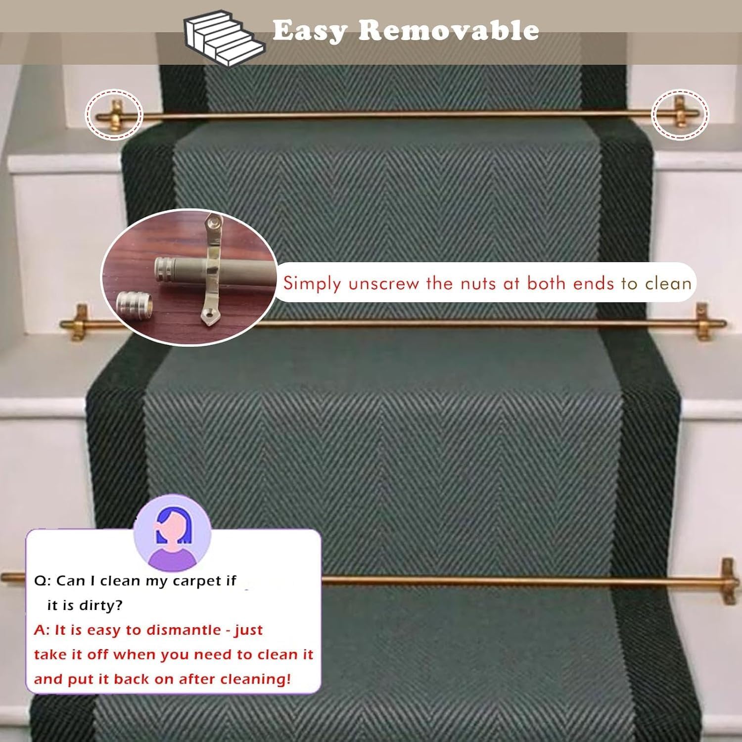 Transform your staircase with our elegant Stair Carpet Runner Tension Rods, designed to provide both support and style for your carpeted stairs. These beautifully crafted rods enhance the aesthetic appeal of your home while serving a practical role in keeping your carpet securely in place. Constructed from solid brass, our stair rods are rust-resistant and built to maintain their stunning appearance over time. Installation is simple with the included mounting accessories, allowing you to elevate your living space, whether it's a cozy living room, a stylish exhibition center, or a professional meeting room. When it's time to clean or replace your carpet, just unscrew the ends for easy access. Available in lengths of 50cm, 60cm, 70cm, 80cm, 90cm, and 100cm, our stair rods can be easily cut to fit your specific staircase design, offering versatility for any décor. With a diameter of 16mm, they provide a sturdy solution that enhances safety by preventing slips and accidents, ensuring peace of mind for your family. Whether you're adding a touch of sophistication to your home or looking for a reliable way to secure your carpet, our stair rods offer exceptional value. Each package includes one stair carpet rod and screws for a complete setup, making them a perfect choice for your home improvement project. For the best fit, we recommend selecting stair rods that are at least 1.5 inches longer than the width of your runner. Upgrade your staircase today and enjoy the perfect combination of beauty and functionality with our durable, easy-to-install stair rods.
